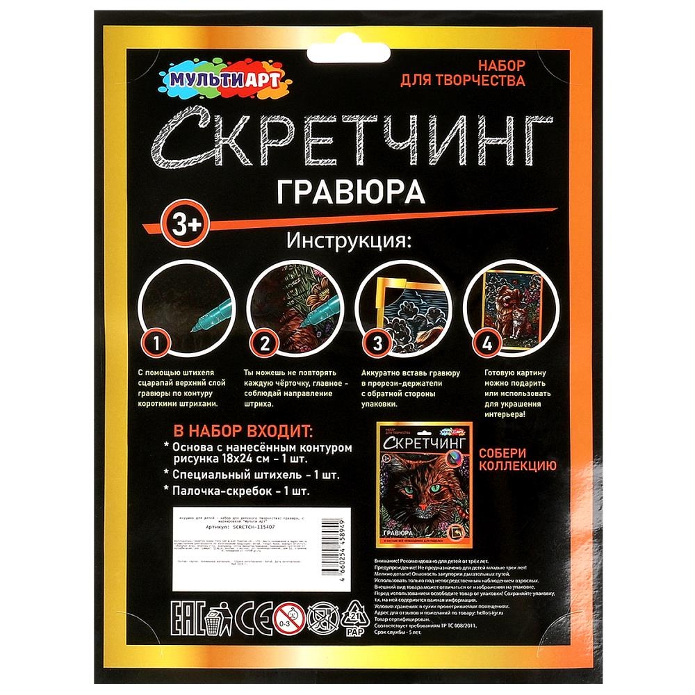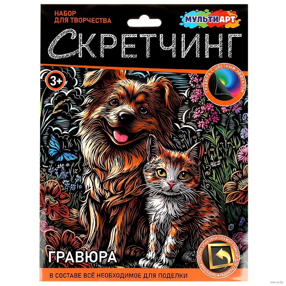 Набор для творчества – скретчинг гравюра "Пёс и кот" – отличный подарок для ребёнка, который будет способствовать развитию его творческих способностей.