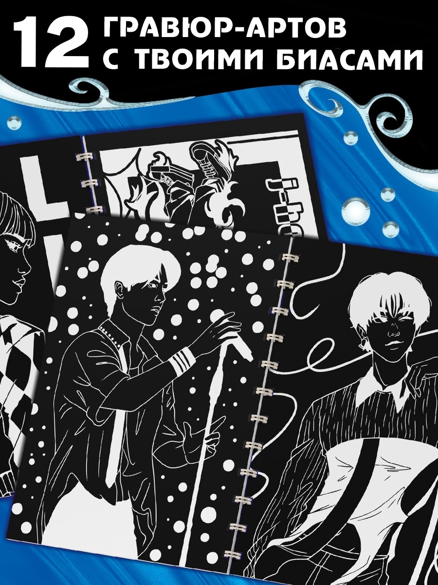 Гравюра-блокнот станет отличным выбором для тех, кто хочет украсить свой день капелькой вдохновения и креативности. Используйте её, чтобы создать красивые картины, которые можно подарить друзьям или украсить свою комнату. Этот блокнот поможет погрузиться в атмосферу K-pop, вдохновляясь эстетикой любимых артистов.