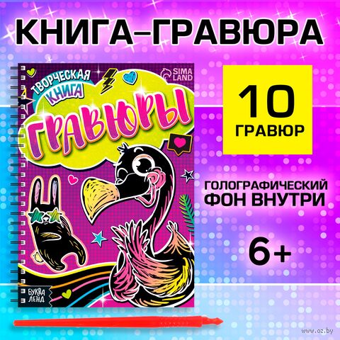 Как создать гравюру? Чтобы сделать гравюру, нужно просто стирать верхний слой с помощью пластикового штихеля, который входит в набор. В книге вы найдёте 10 гравюр и интересные задания «найди и покажи».
