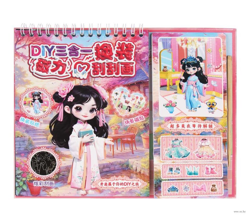 Комплект включает: волшебную гравюру, которая прорисовывается при помощи специального штихтеля; магнитный пазл для создания картины, которую можно будет использовать для декора; множество ярких наклеек для украшения поделок и изготовления открыток.