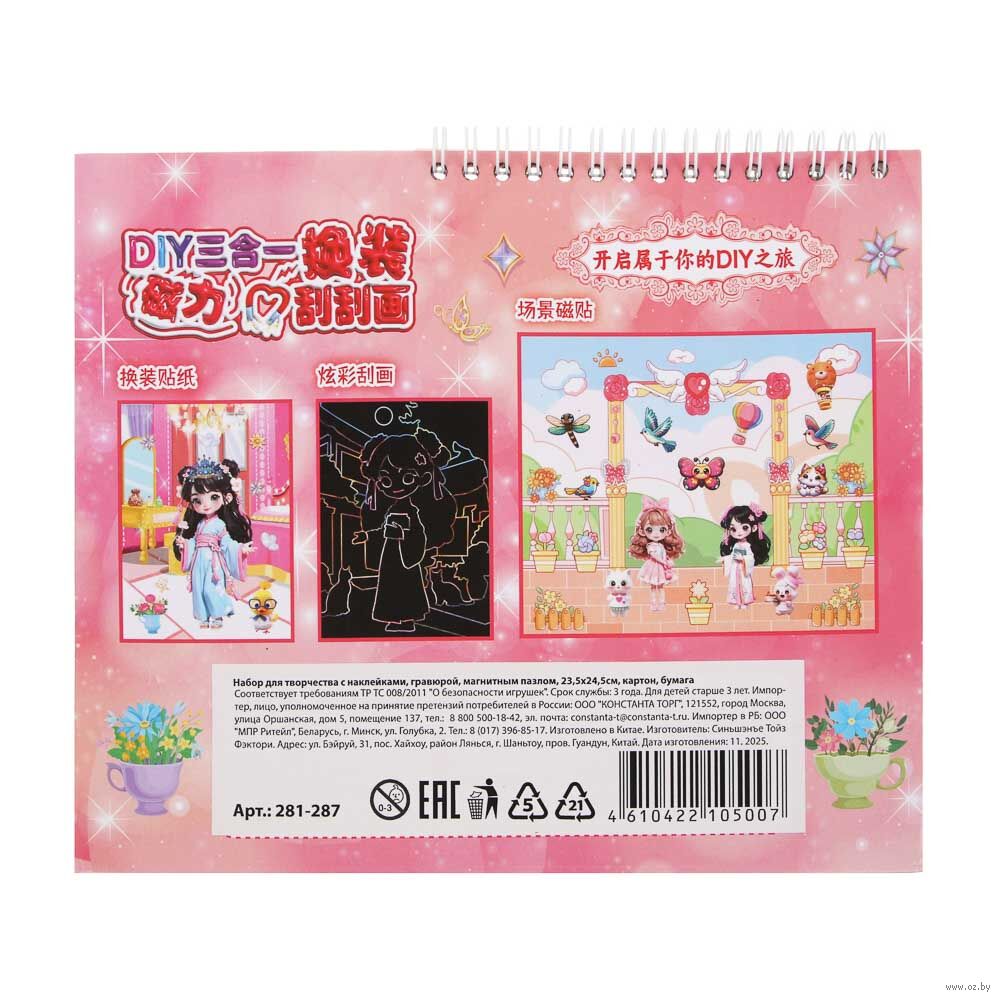 Набор для творчества с наклейками, гравюрой, магнитным пазлом, 23,5х24,5 см, из бумаги и картона – это замечательный подарок для маленькой рукодельницы. Ребенок сможет попробовать себя в трех видах творчества, получая истинное удовольствие от увлекательного досуга.