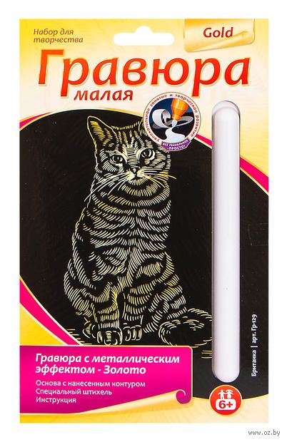 С помощью гравюры "Британка" ваш ребенок получит эффектное изображение! Великолепная картина с золотистым изображением породистой кошечки станет прекрасным украшением интерьера и замечательным подарком на любой праздник.