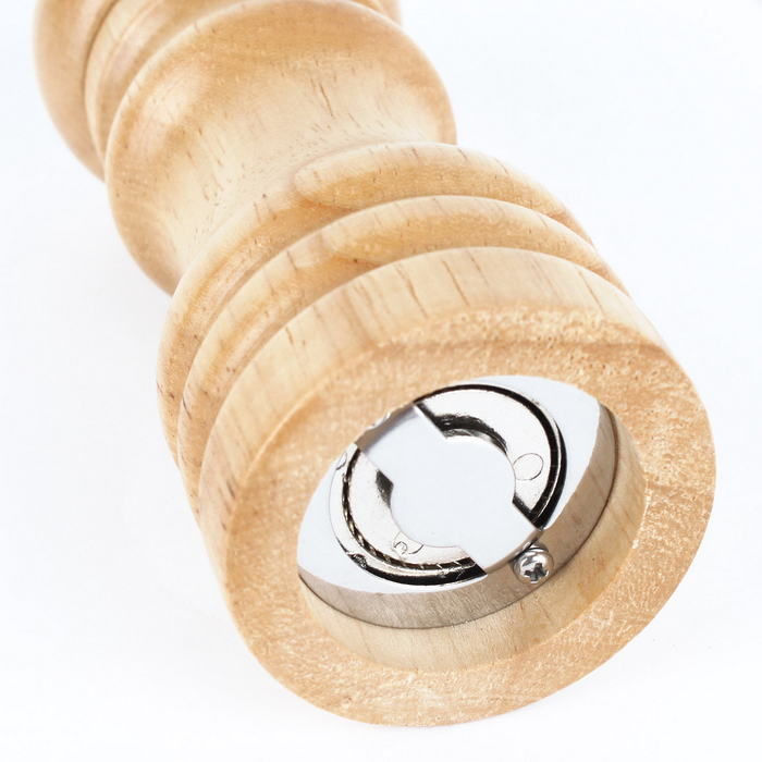 Внешне хорошенькая мельница,с красивой текстурой дерева,с металлическими жерновами. Но очень капризная пешка! Не понравилась ей моя смесь из перцев. Сначала начала измельчать хорошо,а затем пришлось стараться,чтобы поперчить. Весь перец утрамбовался над жерновами,они его просто перестали захватывать.Очистила мельничку от перца и засыпала крупную соль,отлично работает!
