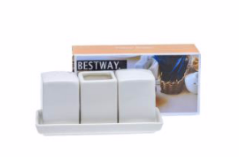 Набор для специй фарфоровый: солонка, перечница, подставка для зубочисток.