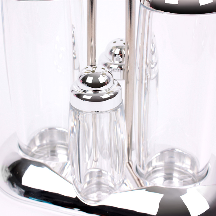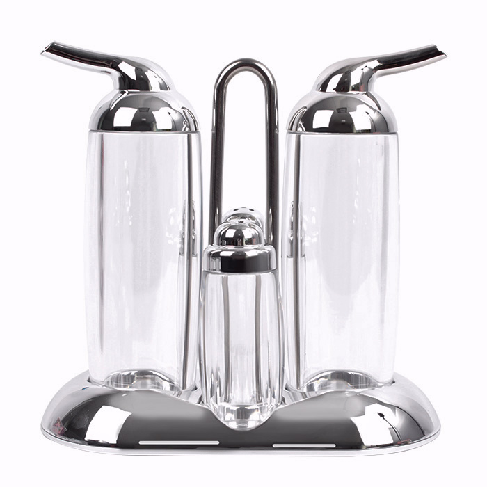 Набор предназначен для хранения различных специй, сахара, соли, а также соусов, масла и уксуса. Ёмкости оснащены дозаторами.
