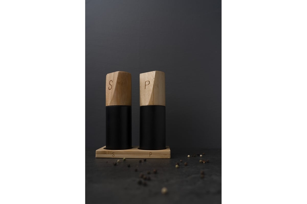 Прочный и стильный корпус из дерева защитит от механических повреждений ручную многоразовую мельницу и солонку.