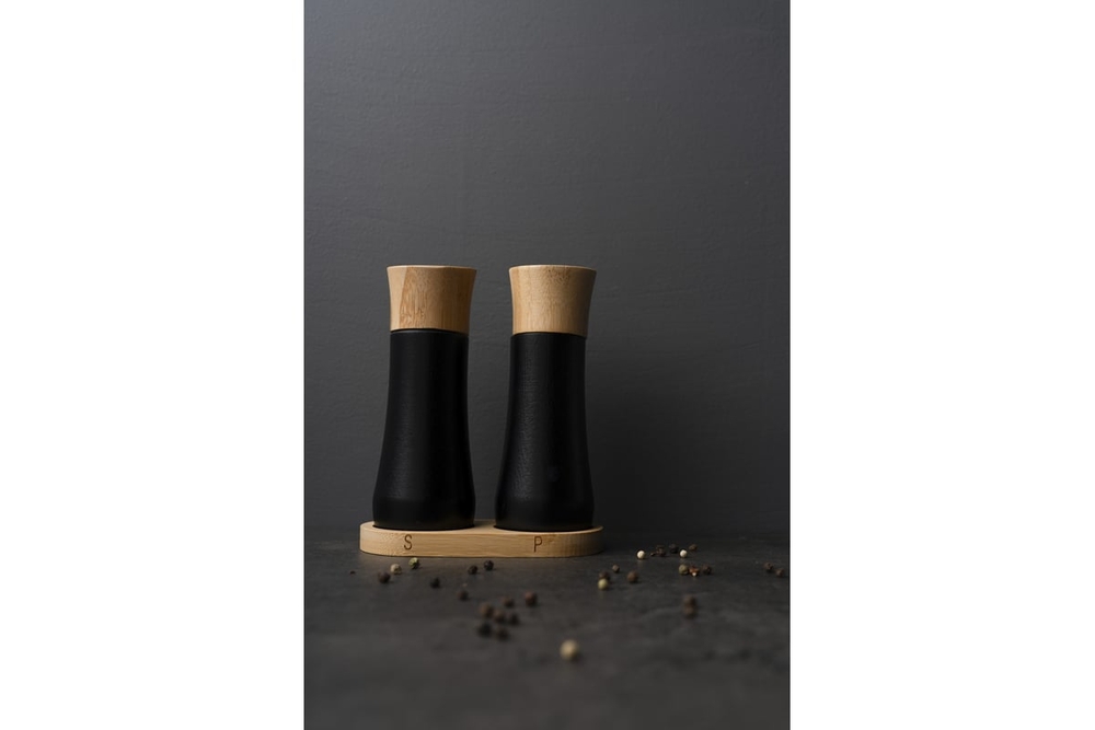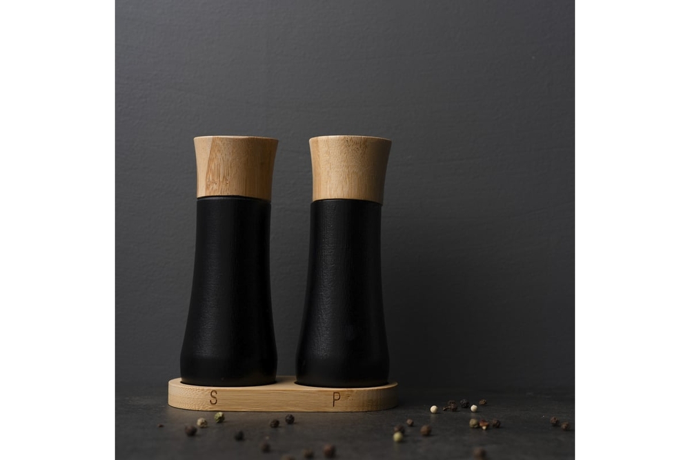 Прочный и стильный корпус из дерева защитит от механических повреждений ручную многоразовую мельницу и солонку.