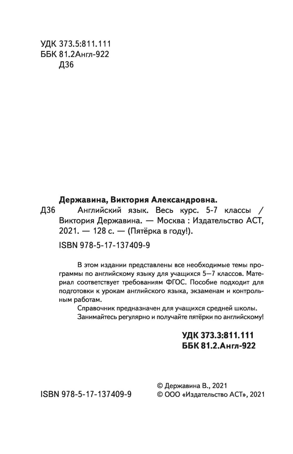 В этом издании представлены все необходимые темы учебной программы по английскому языку для 5-7 классов. Материал соответствует требованиям ФГОС. Пособие подходит для подготовки к урокам английского языка, экзаменам и контрольным работам.