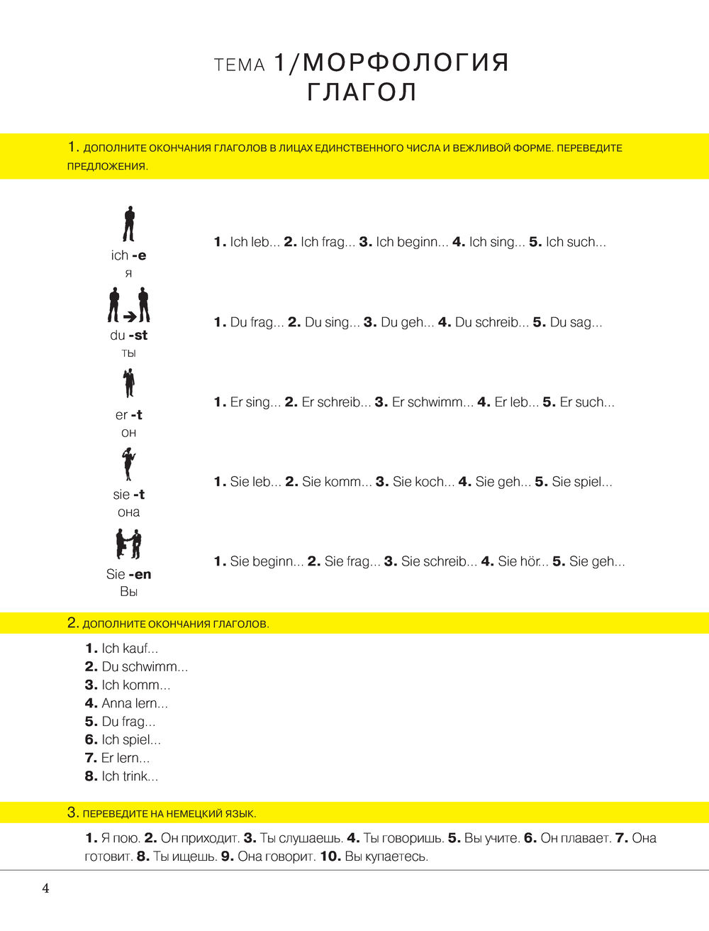 Каждая грамматическая тема сопровождается теоретическими объяснениями, а также примерами и упражнениями для закрепления пройденного материала. Все упражнения распределены по разделам: глагол, существительное, прилагательное, местоимение и т.п. Вы сможете работать последовательно, продвигаясь от простого к более сложному, или выбрать необходимую для вас тему. В заключительной части пособия расположены ключи для самопроверки.