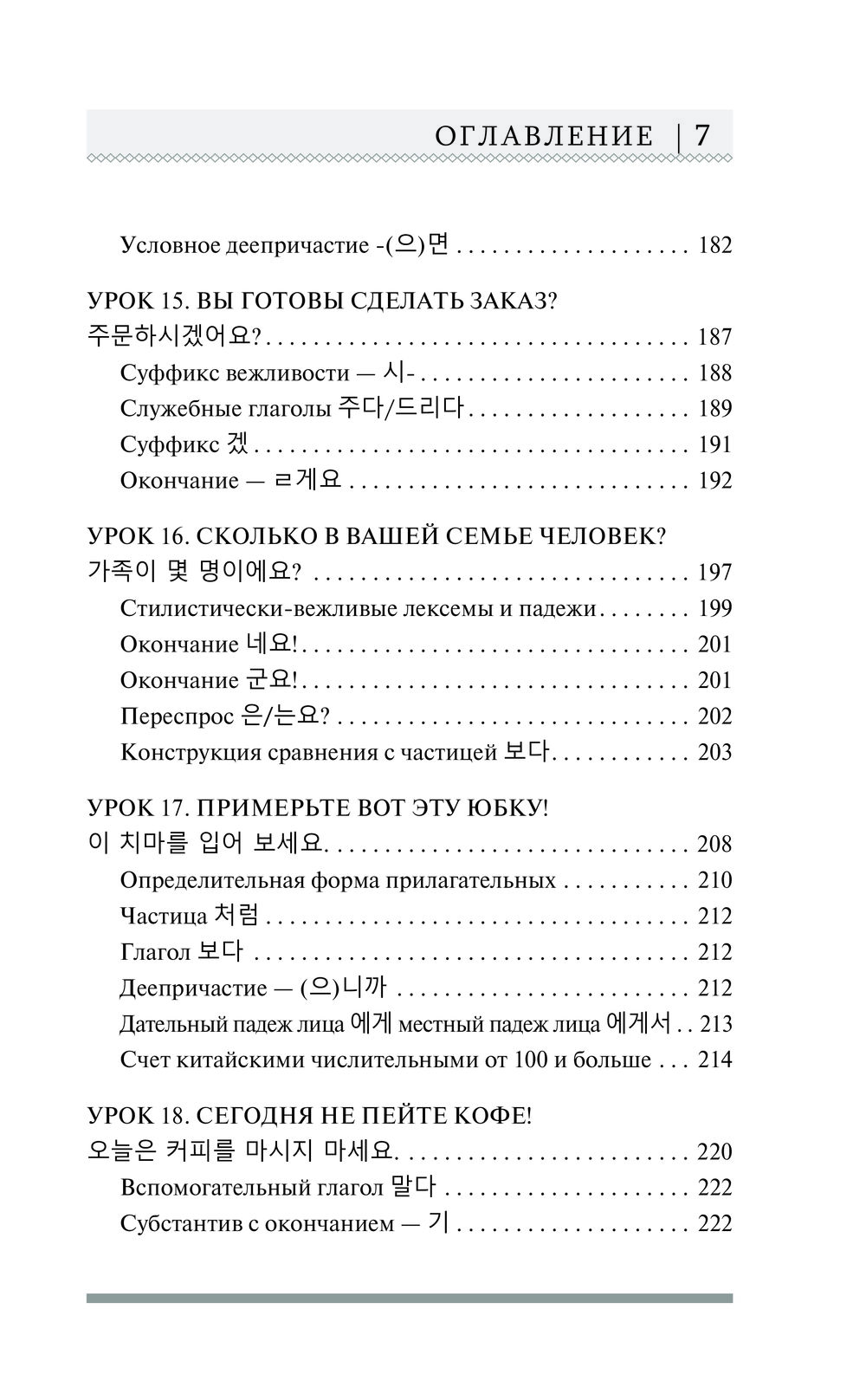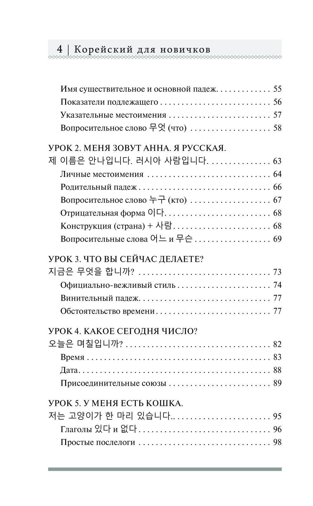 Каждый урок состоит из понятно изложенного теоретического материала, упражнений на закрепление знаний, словарика и интересных фактах о Корее, что поможет лучше понять тонкости жизни в Стране утренней свежести.