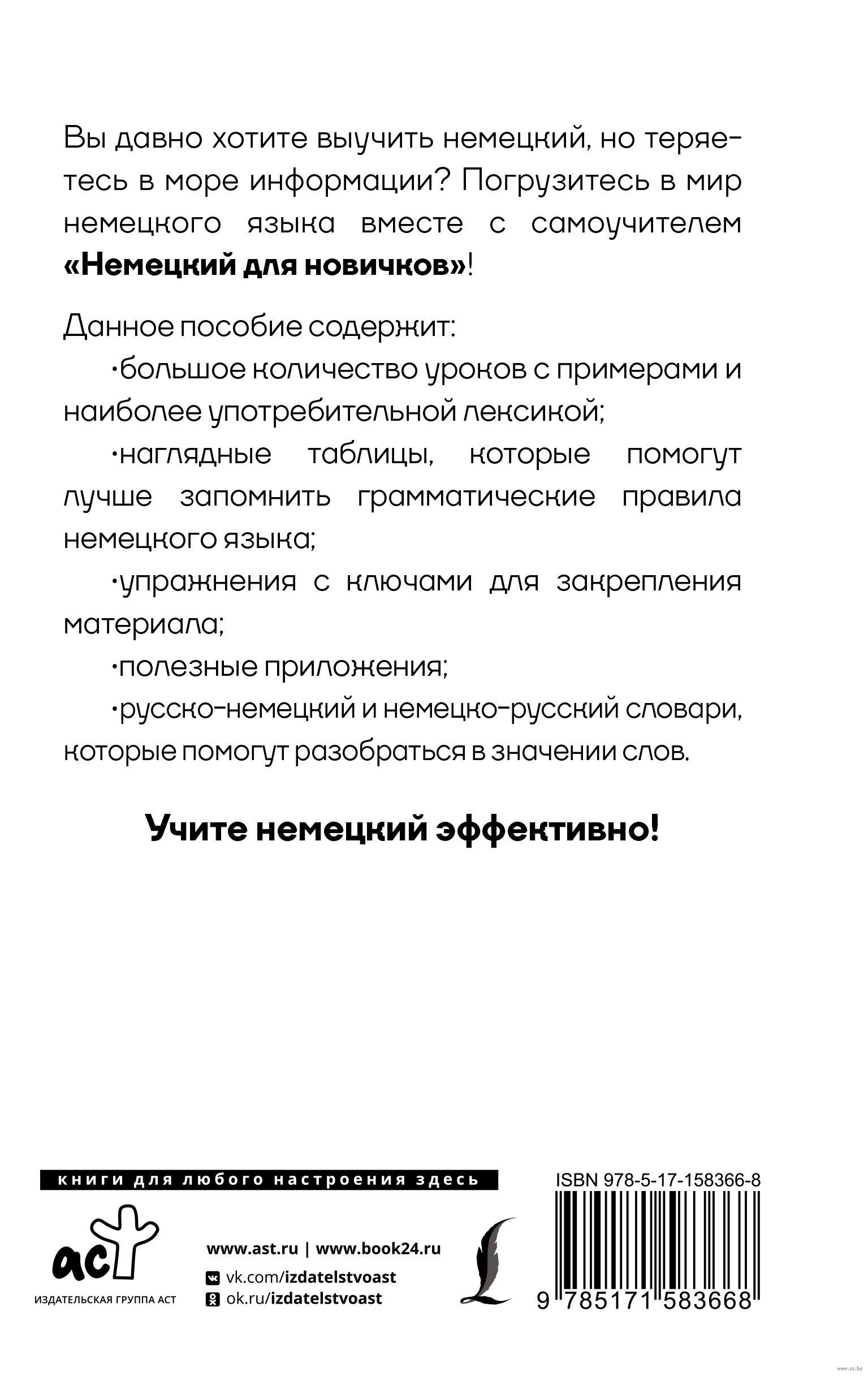 Особенностью нашего самоучителя является наличие русско-немецкого и немецко-русского словарей, которые помогут перевести незнакомые слова, а полезные приложения облегчат вам процесс изучения.