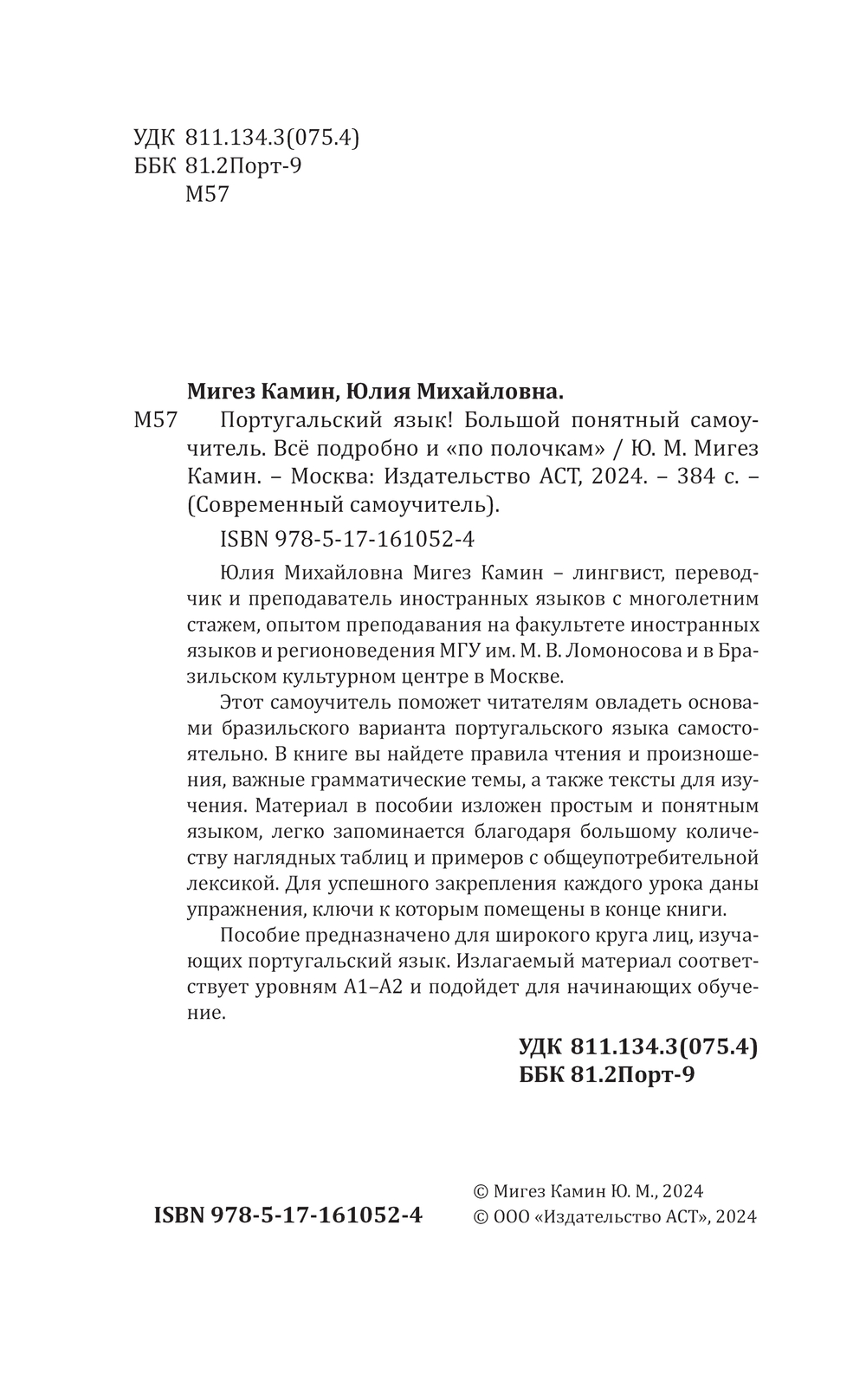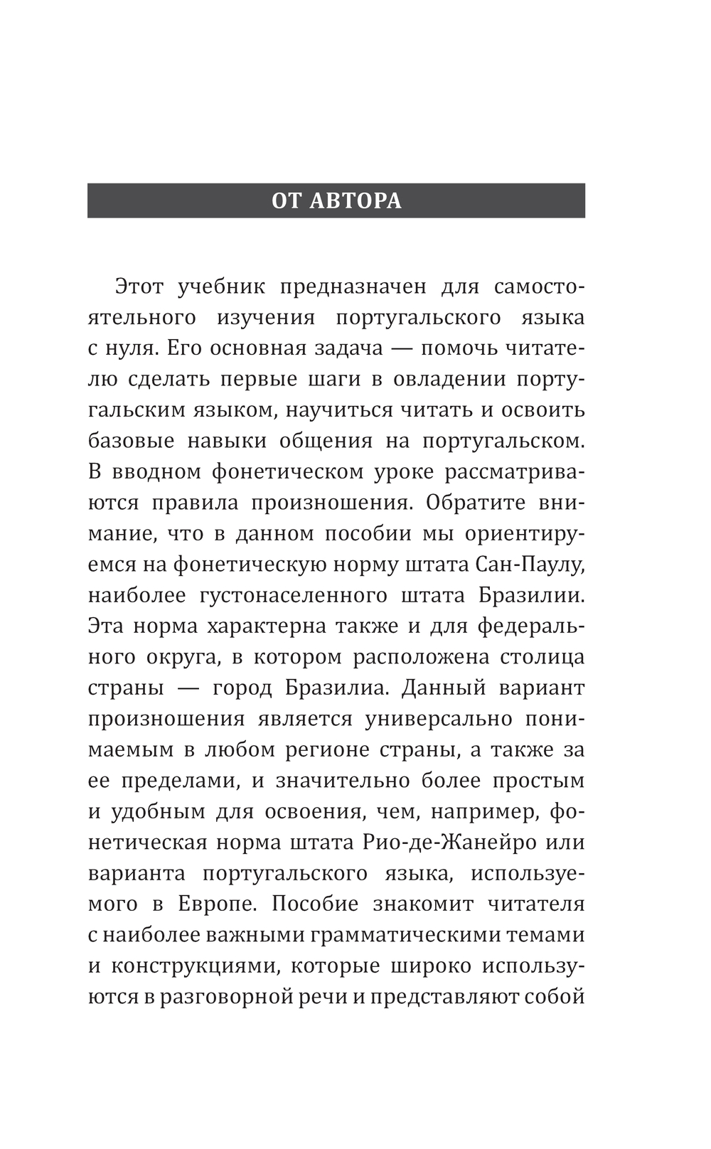 Пособие предназначено для широкого круга лиц, изучающих португальский язык. Излагаемый материал соответствует уровням А1-А2 и подойдет для начинающих обучение.