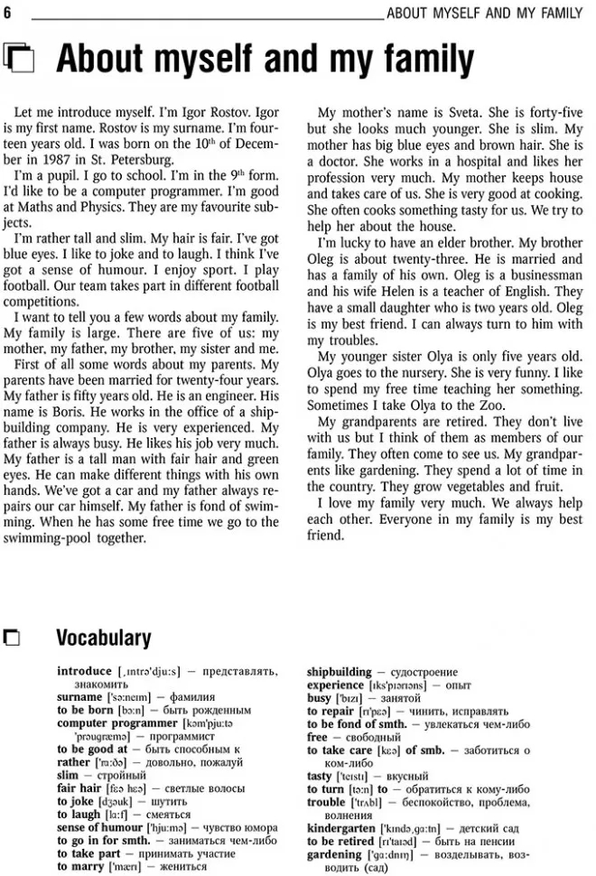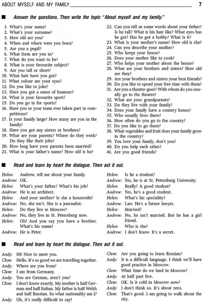 В пособии представлен широкий выбор тем, упражнений и диалогов. Оно может быть использовано учащимися старших классов при подготовке к выпускным экзаменам в 9-ом и 11-ом классах, абитуриентами и всеми, изучающими английский язык.