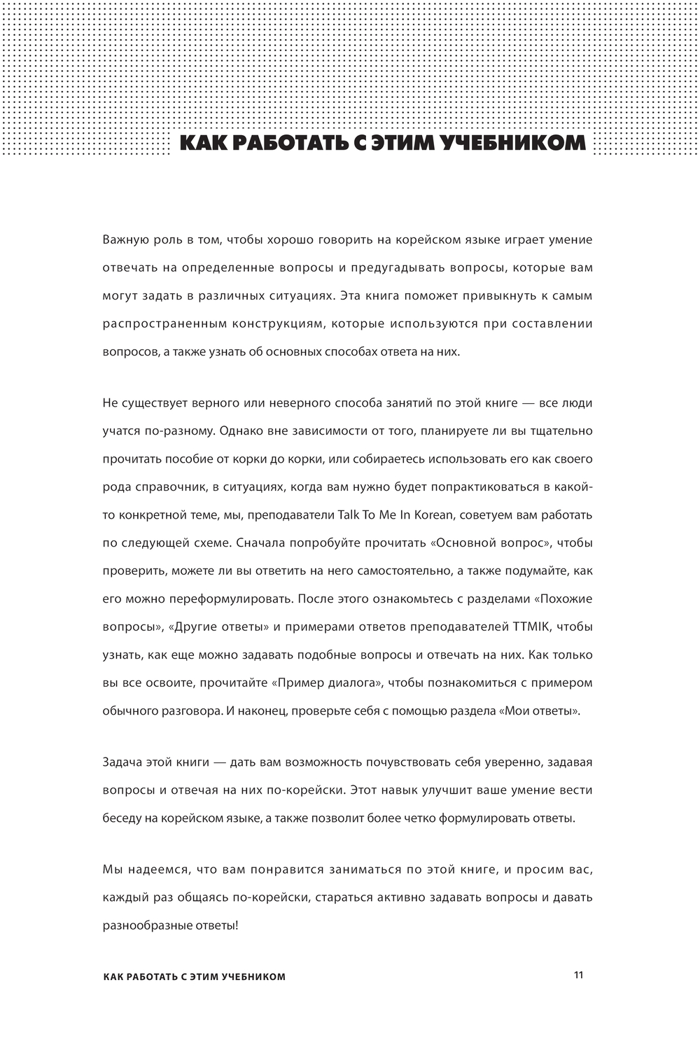 TALK TO ME IN KOREAN – самое большое в мире сообщество для изучающих корейский язык, с 2009 года создающее бесплатные онлайн-уроки на своем сайте talktomeinkorean.com. Благодаря инновационному подходу к обучению, делающему изучение языка интересным и эффективным, сообщество TALK TO ME IN KOREAN собрало около 5 миллионов подписчиков по всему миру и набрало более 100 миллионов просмотров на своем сайте и на Youtube.