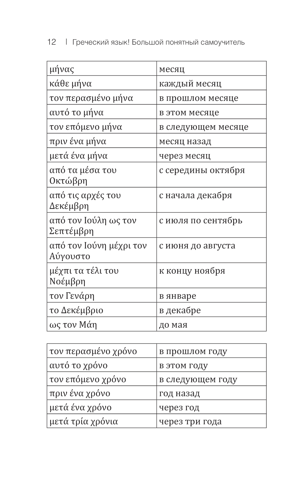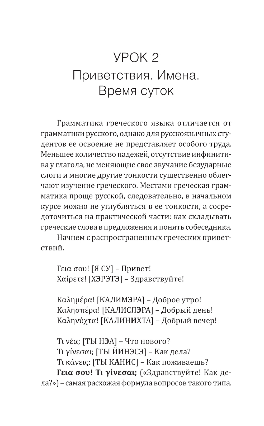 В этом самоучителе вы найдете всё необходимое для того, чтобы заговорить на греческом языке: правила чтения и произношения, основы грамматики, базовую лексику и разговорные фразы. Обучение строится на чередовании грамматических и лексических тем, что способствует улучшению навыков общения. Курс включает 35 уроков, каждый из которых содержит упражнения для закрепления изученного материала, ответы к которым находятся в конце книги. Материал подан в виде таблиц и схем, что обеспечивает его оптимальное усвоение.