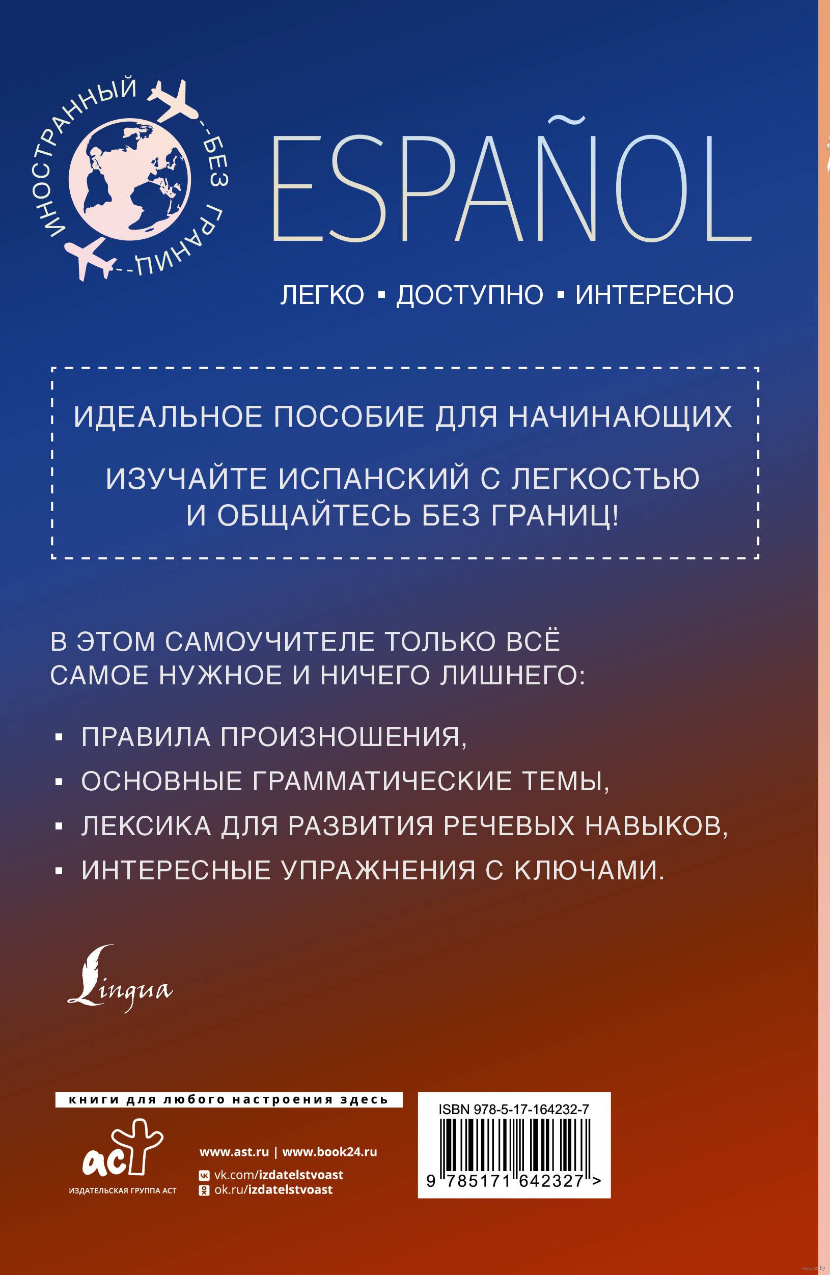 Данное издание содержит лексический и грамматический материал для изучения испанского языка от простого к сложному. Пособие охватывает основные темы испанской грамматики. В книге содержится большое количество упражнений, проверить правильность которых вы сможете самостоятельно при помощи ключей.
