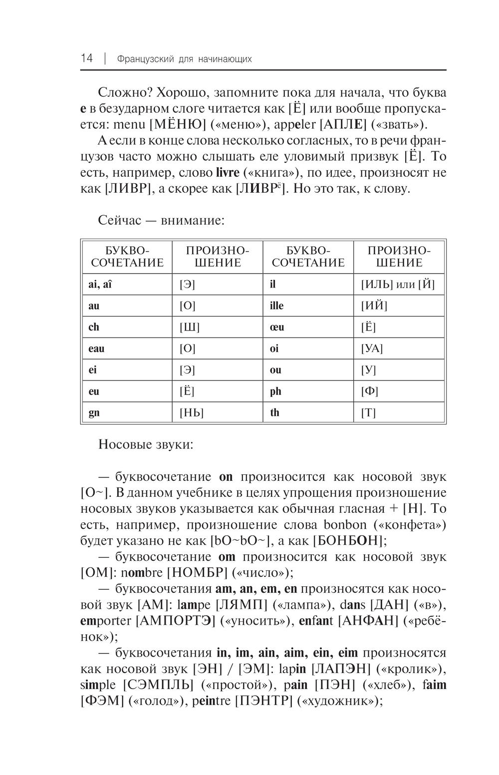 Вы освоите базовую фонетику и грамматику, а также научитесь строить простые предложения на французском. Наглядные таблицы, большое количество примеров позволят лучше усвоить материал, а закрепить теорию можно в упражнениях, ключи к которым приводятся в конце издания.