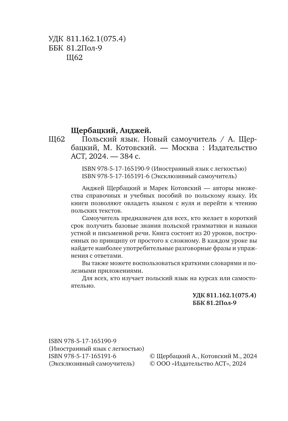 Анджей Щербацкий и Марек Котовский – авторы множества справочных и учебных пособий по польскому языку. Их книги позволяют овладеть языком с нуля и перейти к чтению польских текстов.