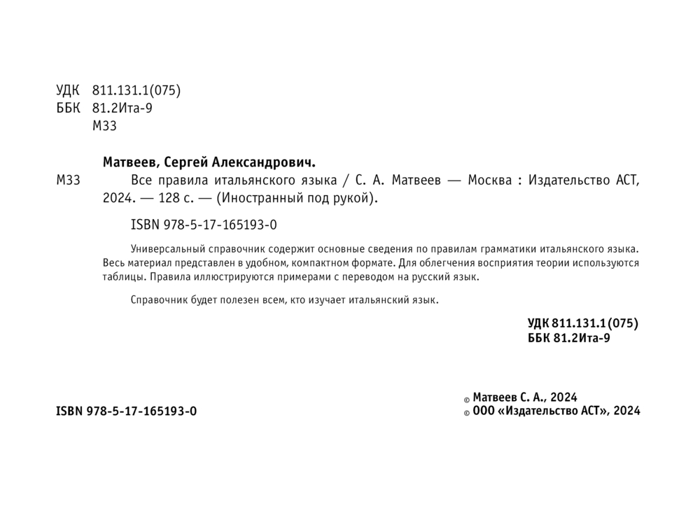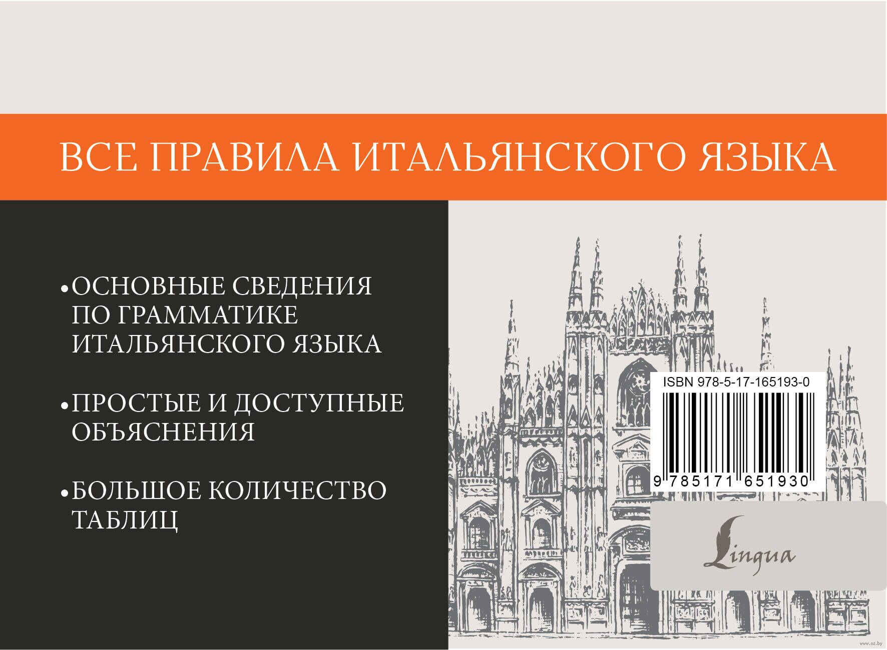 Универсальный справочник содержит основные сведения по правилам грамматики итальянского языка. Весь материал представлен в удобном, компактном формате. Для облегчения восприятия теории используются таблицы. Правила иллюстрируются примерами с переводом на русский язык.