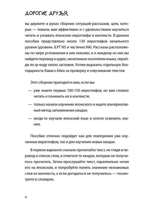 В пособии представлен альтернативный метод изучения кандзи: вы будете не только видеть иероглифы и писать их, но и воспринимать на слух. Такой способ облегчит процесс запоминания и сделает его интереснее.