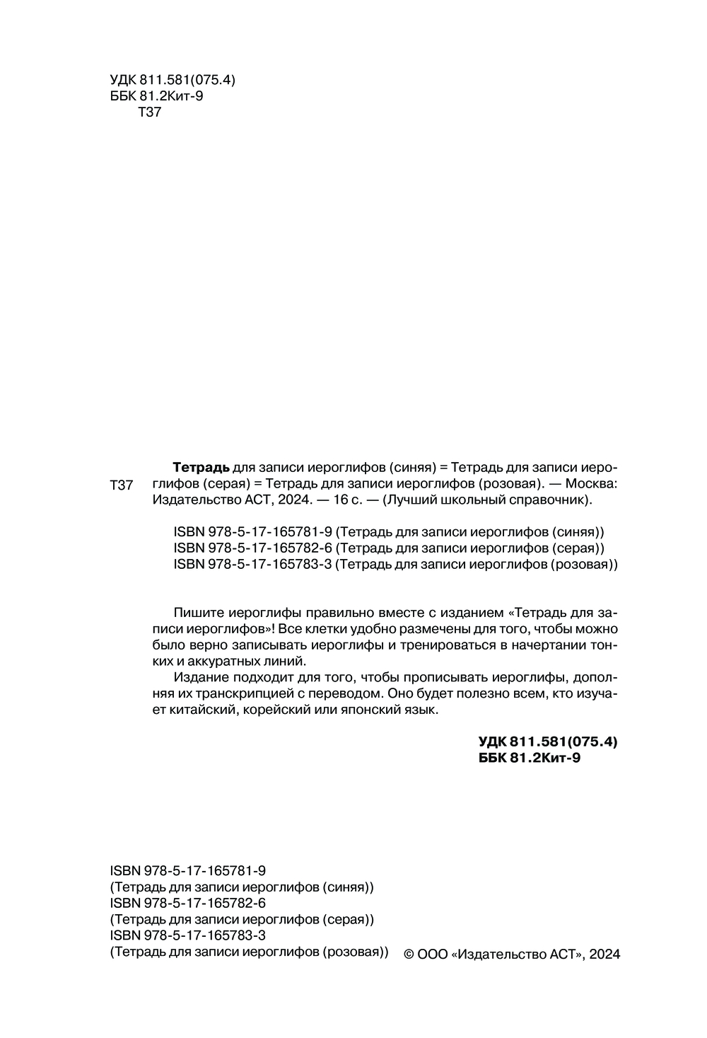 Издание подходит для того, чтобы прописывать иероглифы, дополняя их транскрипцией с переводом. Оно будет полезно всем, кто изучает китайский, корейский или японский язык.
