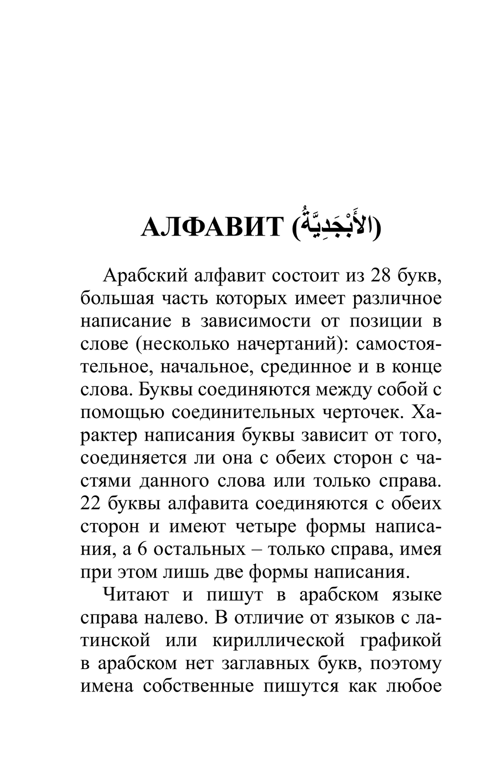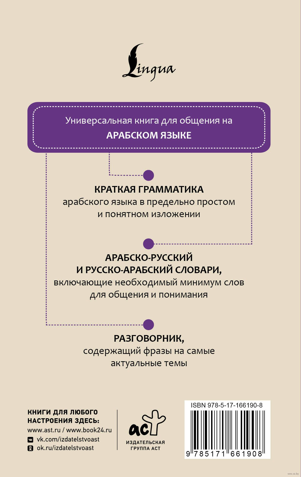 Книга представляет собой современный тип самоучителя и состоит из 4 частей, содержащих самые нужные материалы для обучения иностранному языку: разговорник, арабско-русский и русско-арабский словари, а также раздел со сведениями по грамматике арабского языка в предельно простом и понятном изложении.