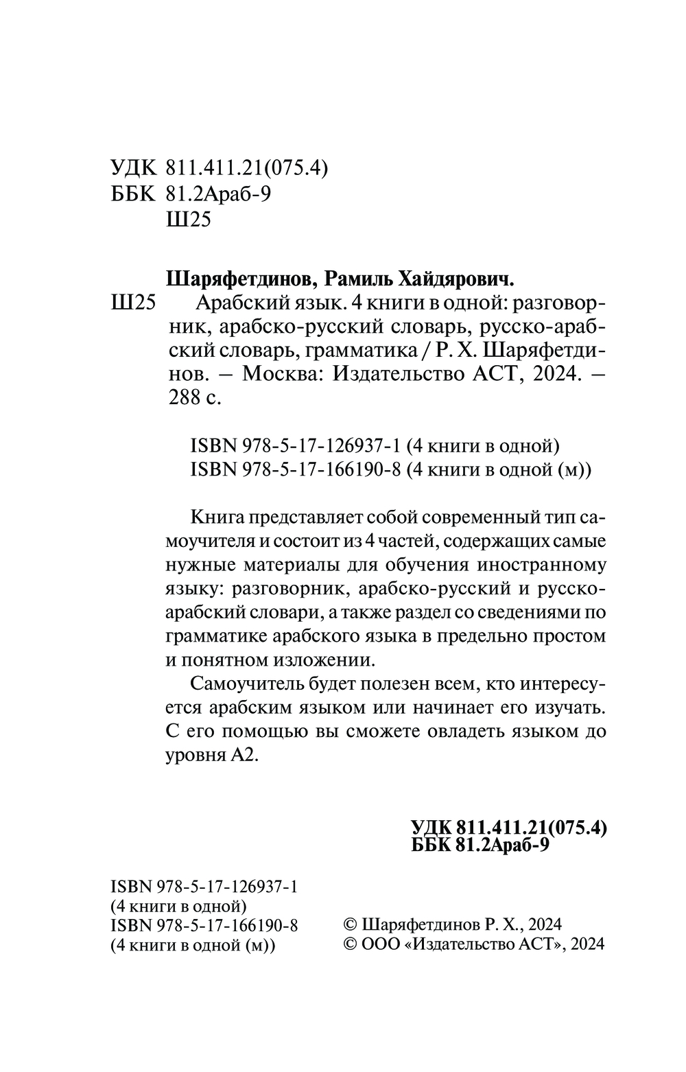 Арабский язык. 4 книги в одной: разговорник, арабско-русский словарь, русско-арабский словарь, грамматика