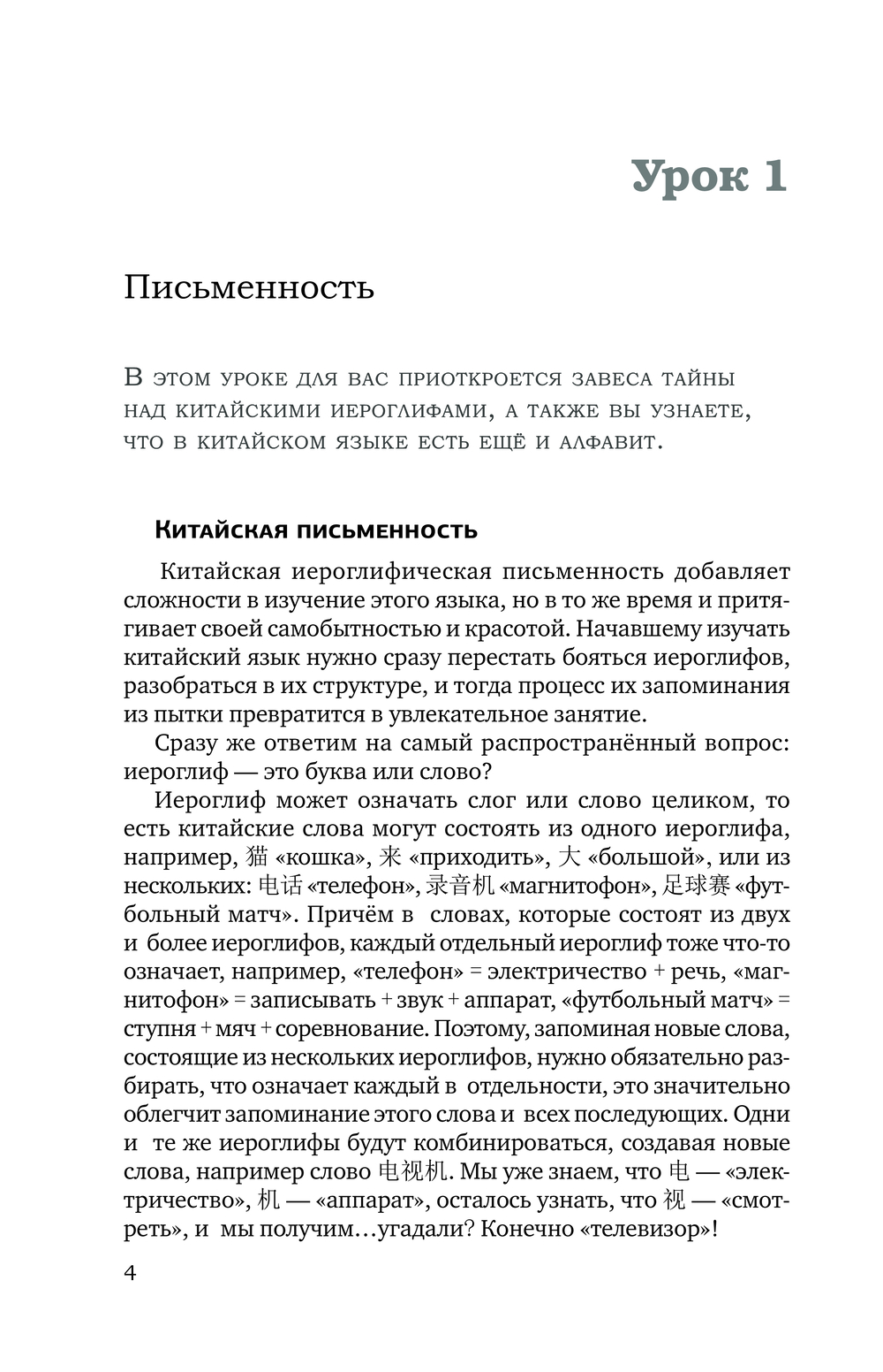 Книга охватывает весь объем грамматического, лексического и иероглифического материала, необходимого для изучения языка на начальном уровне. Для успешного закрепления пройденной темы в каждом уроке представлены упражнения, ключи к которым находятся в конце книги.