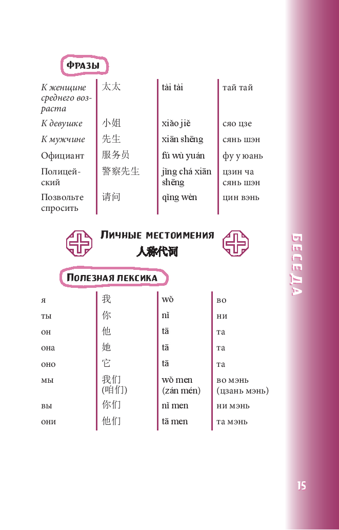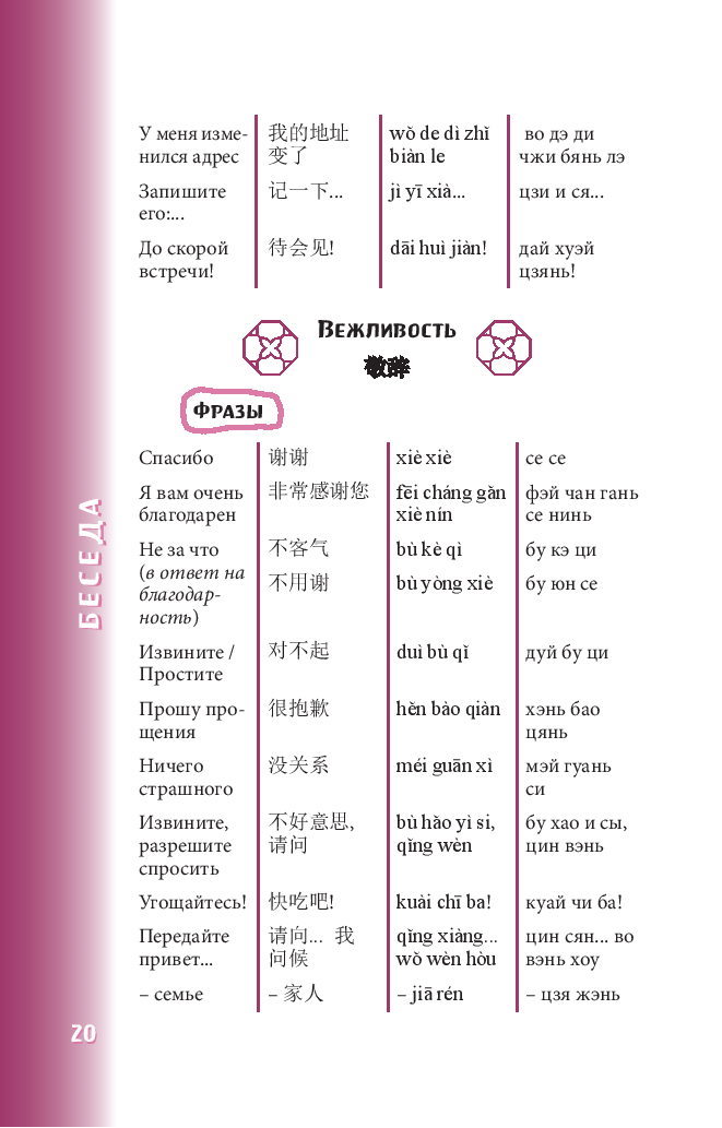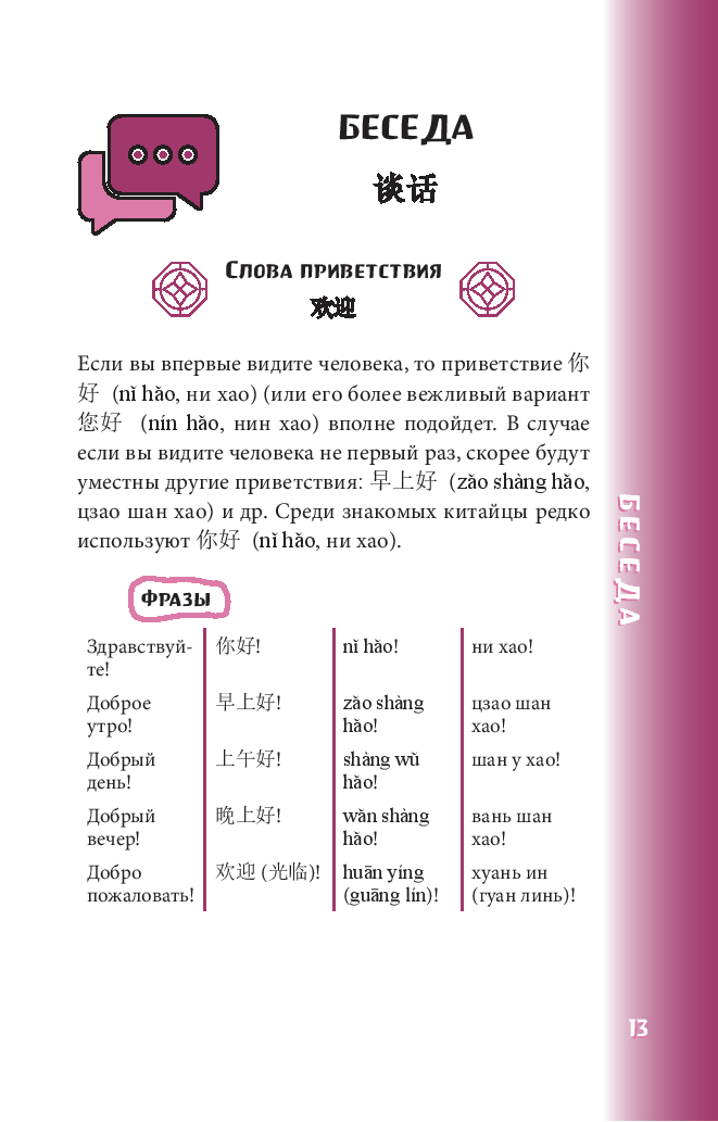Предназначен для смелых путешествий в Китай, а также послужит отличным пособием для самостоятельного развития разговорного языка.
