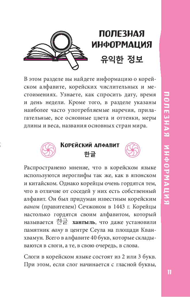 Издание предназначено для русскоговорящих, выезжающих в Корею, а также подходит для самостоятельного изучения разговорного языка.