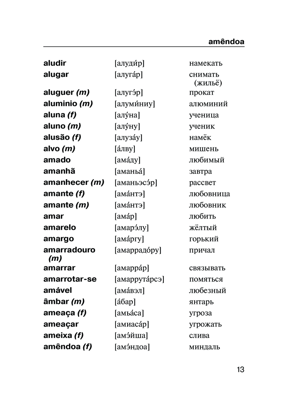Португальско-русская и русско-португальская части словаря содержат примерно 4500 наиболее употребительных слов. Все слова снабжены транскрипцией, прописанной русскими буквами.