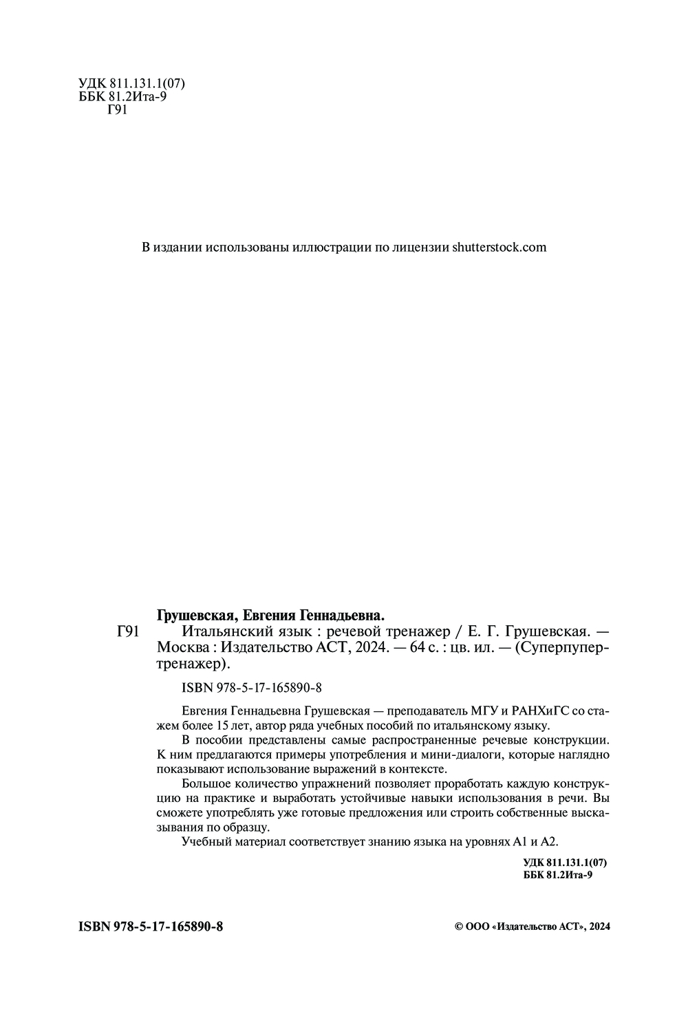 Евгения Грушевская Геннадьевна – преподаватель МГУ и РАНХиГС со стажем более 15 лет, автор ряда учебных пособий по итальянскому языку.