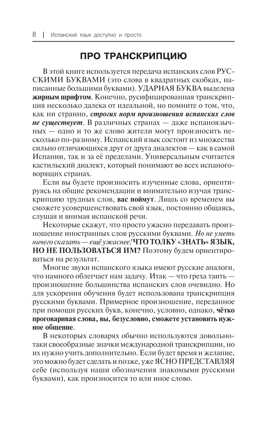 В данном самоучителе представлена революционная методика обучения иностранному языку. Автор доступно объясняет правила и особенности испанского языка. Использован особый способ подачи материала, который учитывает психологические особенности освоения иностранного языка и активизирует различные виды памяти.