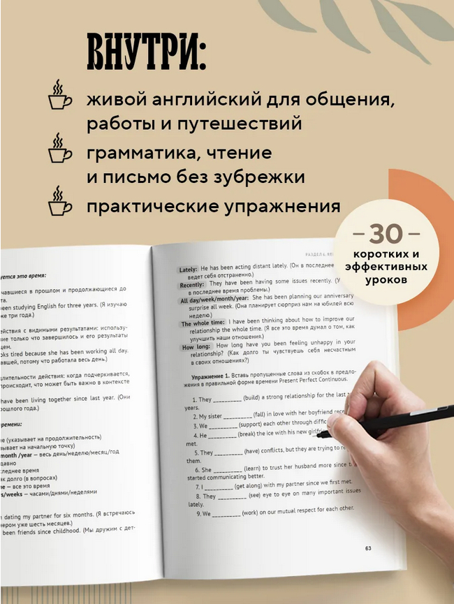 "Английский за чашкой кофе" – это 30 коротких и эффективных уроков, которые помогут вам: