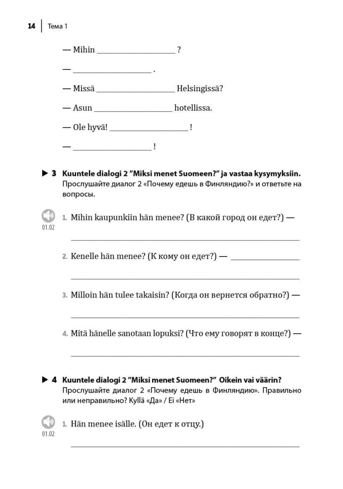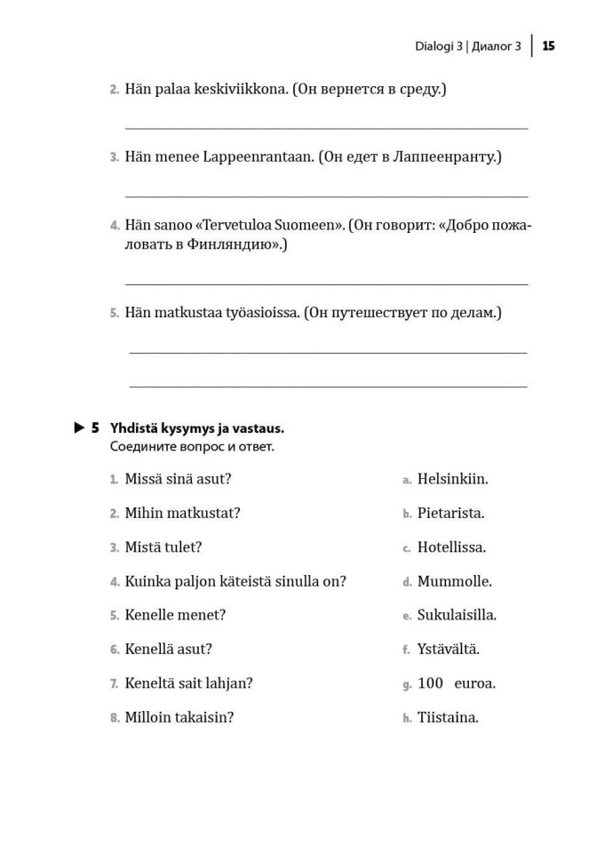 В приложении приводится информация по финской грамматике, а наличие ключей позволяет использовать книгу для самостоятельной работы. Пособие предназначено для владеющих финским языком на начальном или базовом уровне, будет полезно студентам 1-3 курсов факультетов иностранных языков и всем, кто изучает финский язык самостоятельно. Рекомендуемый уровень владения языком – от A1 до A2.