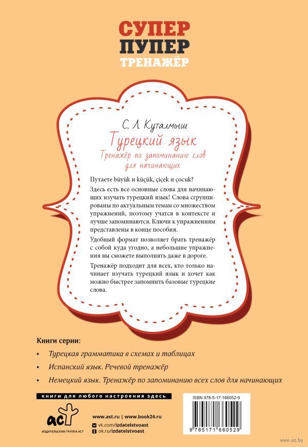 Здесь есть все основные слова для начинающих изучать турецкий язык! Слова сгруппированы по актуальным темам со множеством упражнений, поэтому учатся в контексте и лучше запоминаются. Ключи к упражнениям представлены в конце пособия.