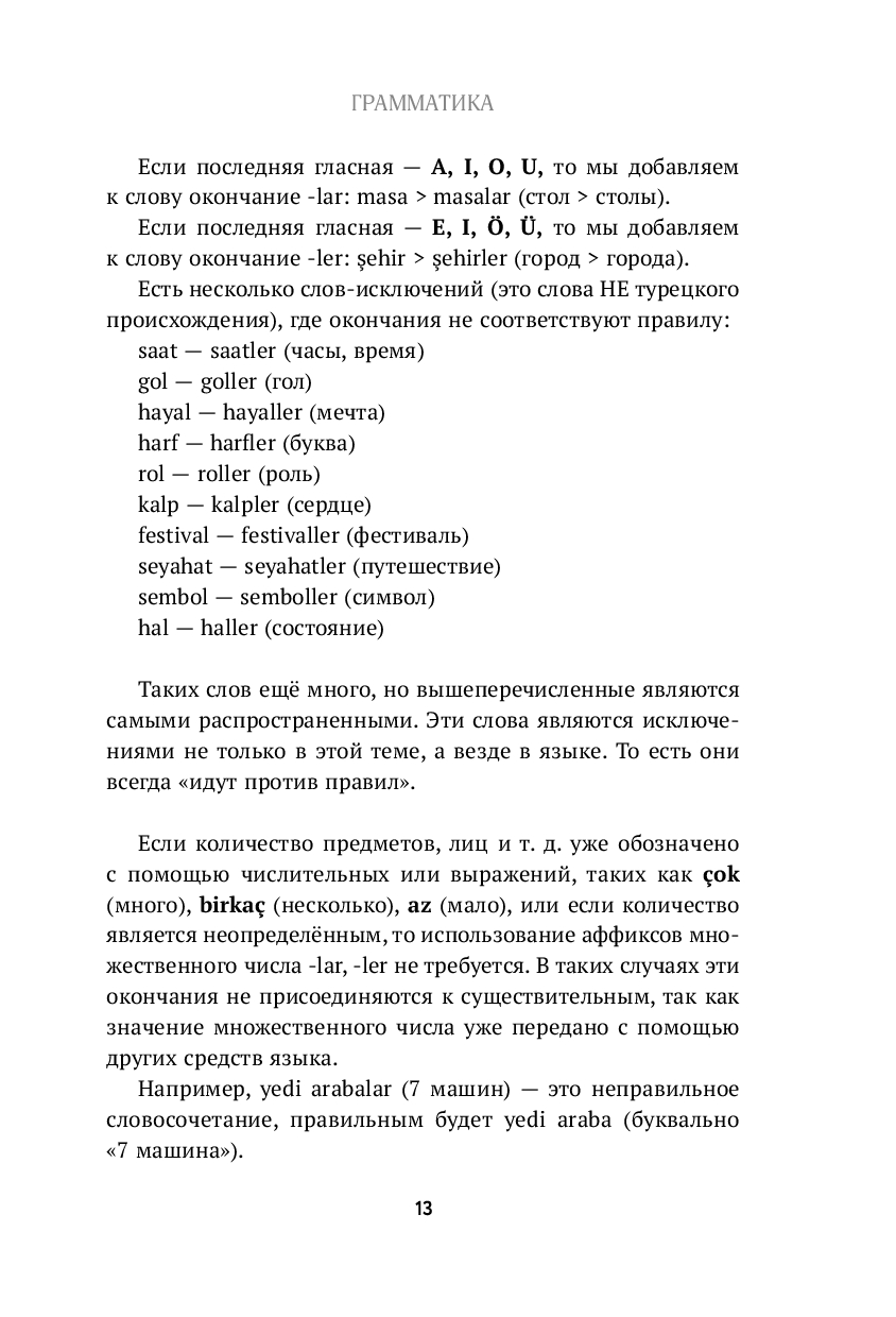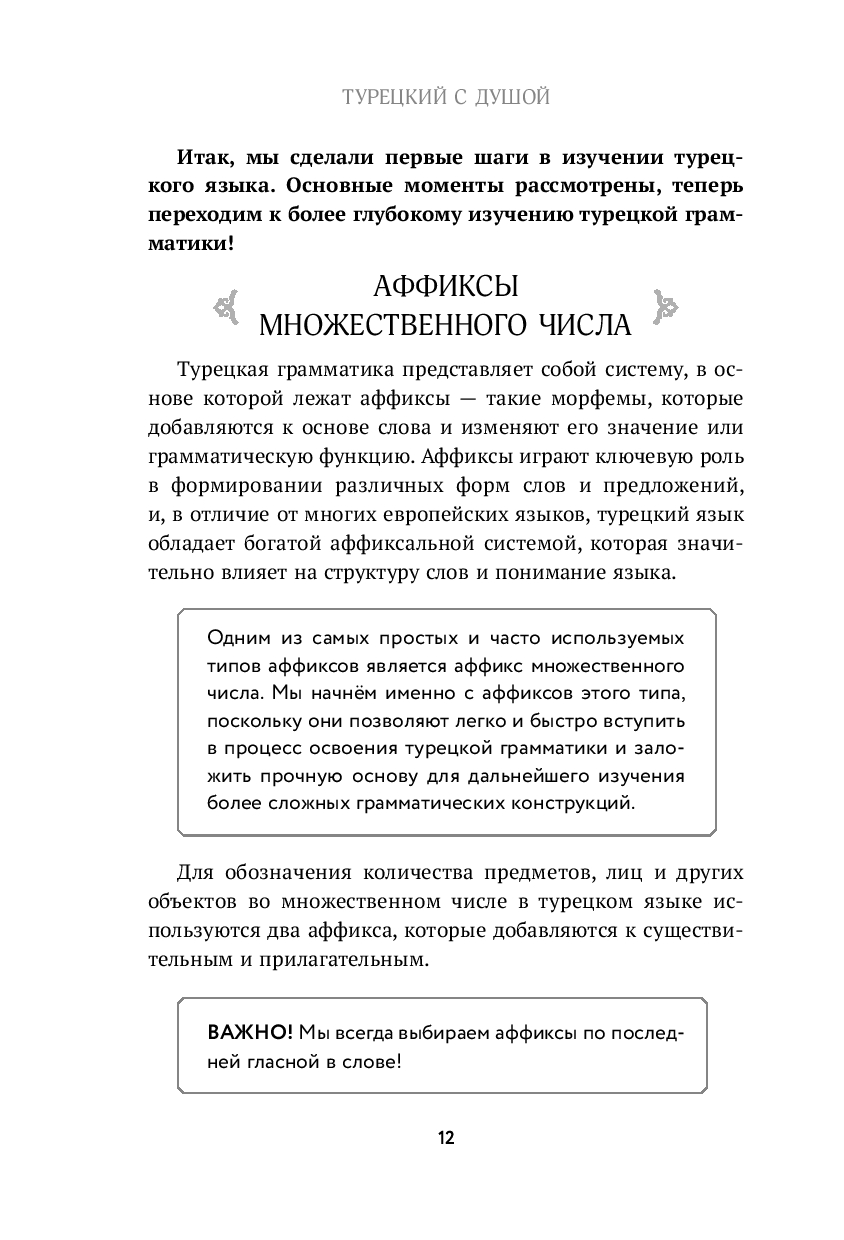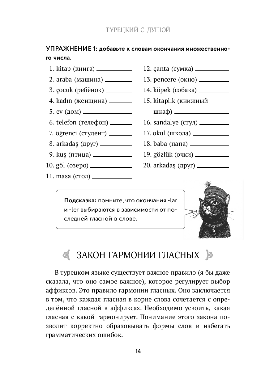 Эта книга – универсальный гид по турецкому языку, благодаря которому вы прочувствуете душу этой удивительной страны! В этом вам поможет Оля Миресмаэйли – опытный преподаватель и автор экспертного блога с аудиторией более 200 тыс. подписчиков в социальных сетях. Она много лет прожила в Турции и владеет турецким на уровне носителя. Уникальный формат самоучителя и разговорника позволит легко понимать язык, а также общаться по-турецки в самых разных ситуациях. Раздел грамматики оснащен полезными упражнениями для практики, а словарь и разговорник поделены на тематические разделы. Транскрипция на кириллице поможет быстро освоить звучание турецкого языка. Идеальный старт для тех, кто погружается в культуру всей душой и хочет заговорить на турецком с первого дня!