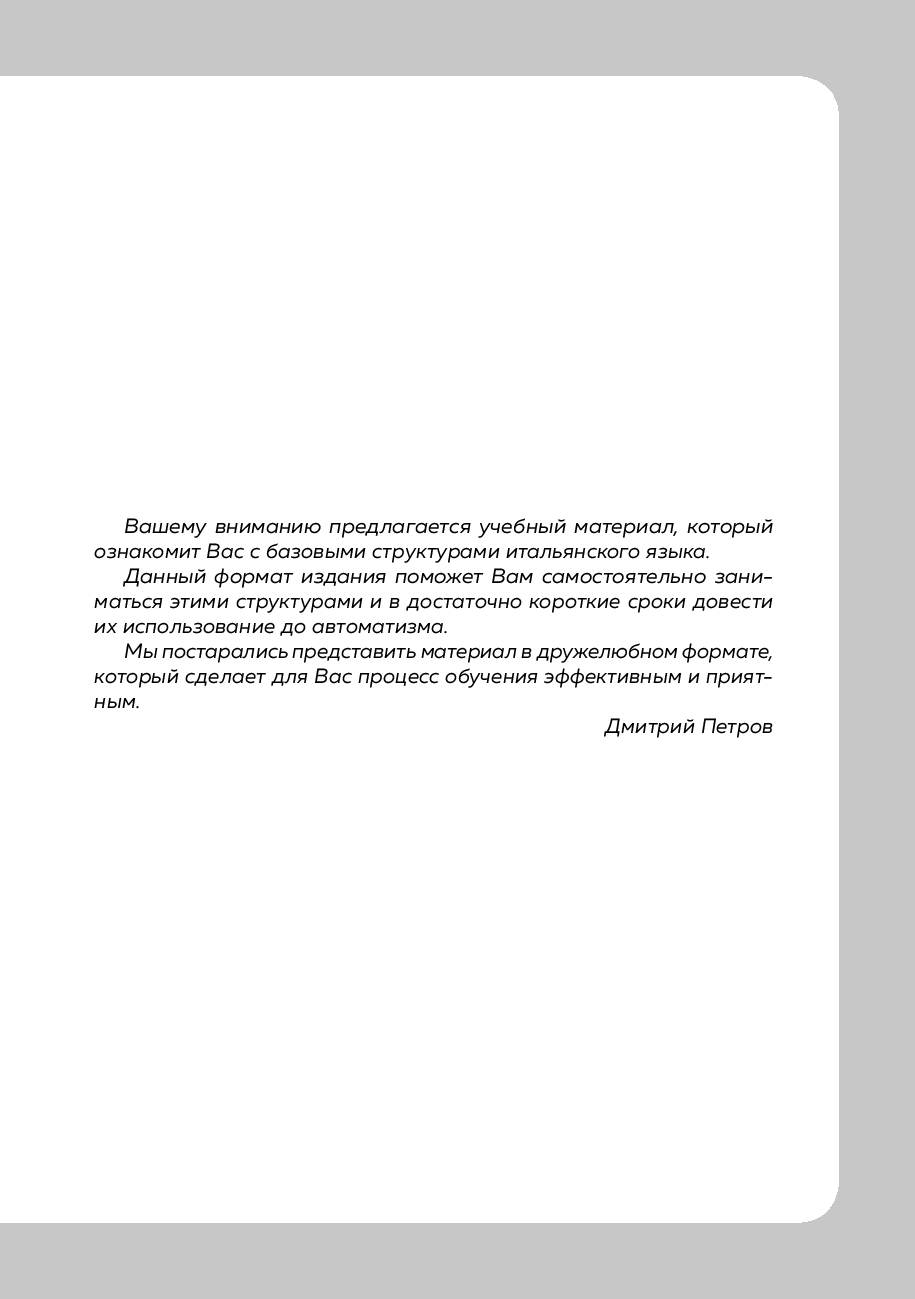 Это серия самоучителей от знаменитого полиглота и синхронного переводчика Дмитрия Петрова. Он уверен: чтобы заговорить на иностранном языке, совсем не обязательно посвящать его изучению десятилетия. Гораздо важнее освоить базовые алгоритмы, плюс – минимально необходимый для общения запас слов.