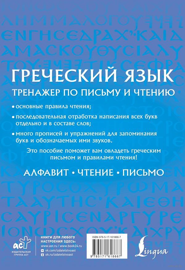 Научитесь читать и писать на греческом благодаря пособию "Греческий язык. Тренажер по письму и чтению"!