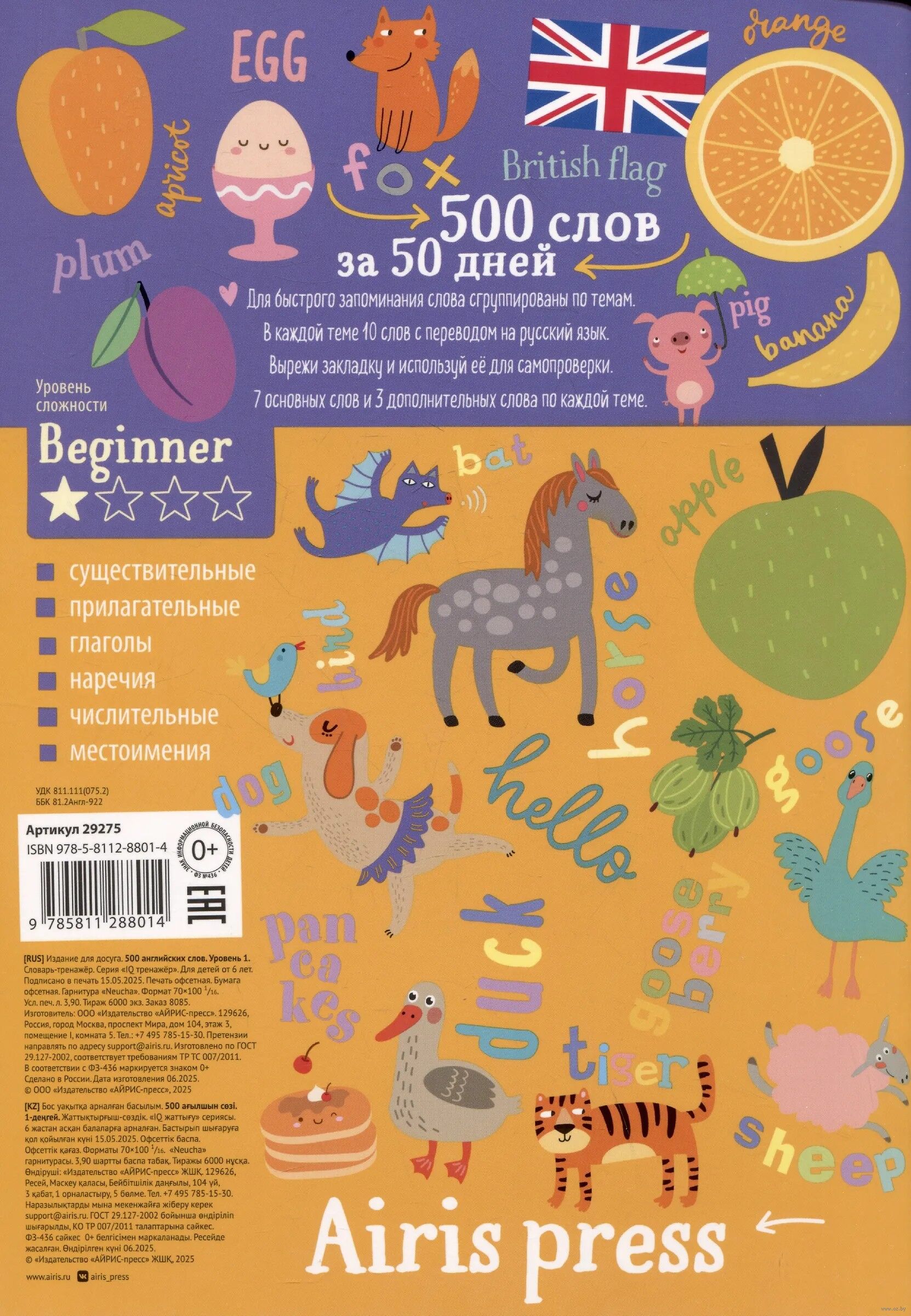 Словарь-тренажер для активного запоминания. 500 английских слов. Уровень 1