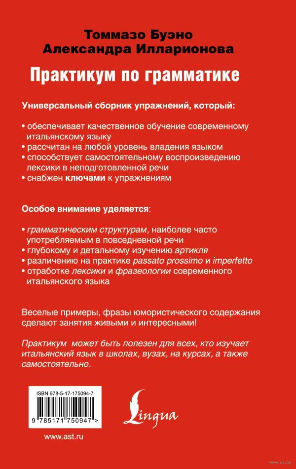 Универсальный практикум по грамматике, написанный носителем итальянского языка Томмазо Буэно, дает возможность освоить живой разговорный язык.