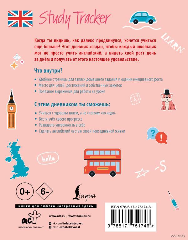 Мотивация – это самое главное при изучении языка. Лучше всего мотивирует отслеживание собственного прогресса. Именно для этого предназначен мотивационный дневник "My Study Way: Motivation Diary." В нем уже есть специальные графы, которые нужно заполнять во время или после каждого занятия, а также место для записи домашнего задания. Кроме того, в дневнике есть трекер, чтобы отслеживай прогресс в изучении английского языка за неделю. А чтобы ученик чувствовал себя увереннее на занятии, в "My Study Way" есть подсказки с самыми часто используемыми на уроках словами и фразами.