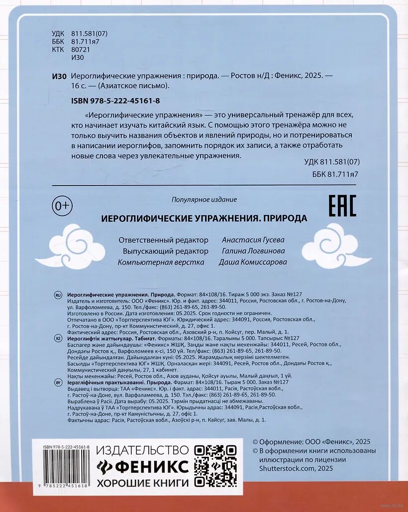 | Изготовитель | ЗАО "Издательство "Феникс". 190000, РФ, г. Санкт-Петербург, пер. Антоненко, 2 |