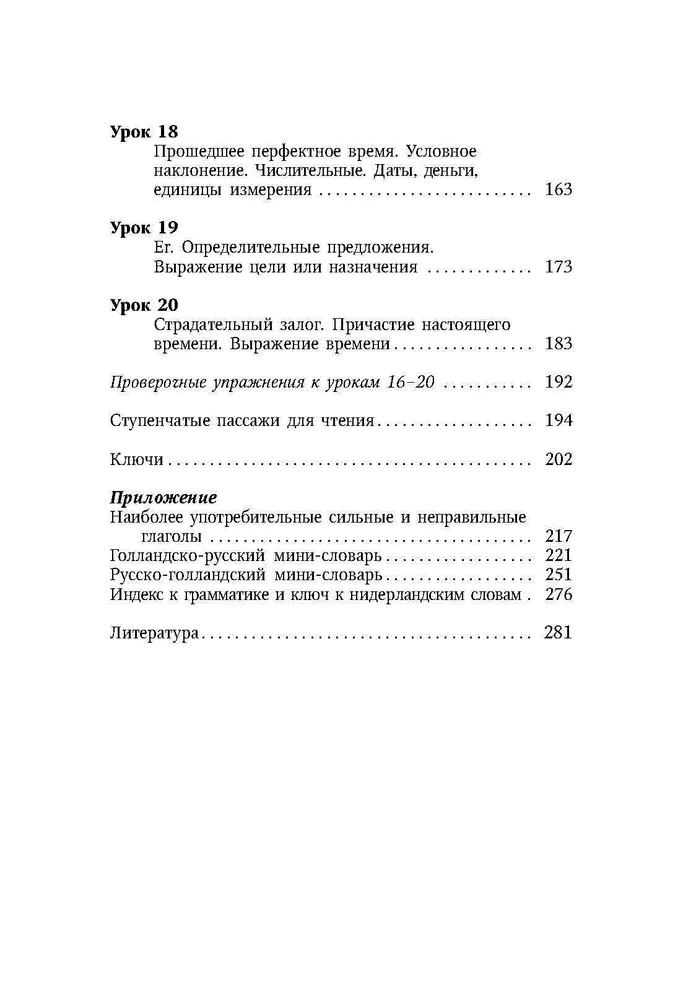 Пособие содержит 20 уроков нидерландского (голландского) языка, изложенных в доступной форме. Каждый урок состоит из пяти разделов: грамматики, словаря, упражнений с ключами, тренировки и разговора.Издание предназначено для всех, кто желает самостоятельно изучать нидерландский язык.