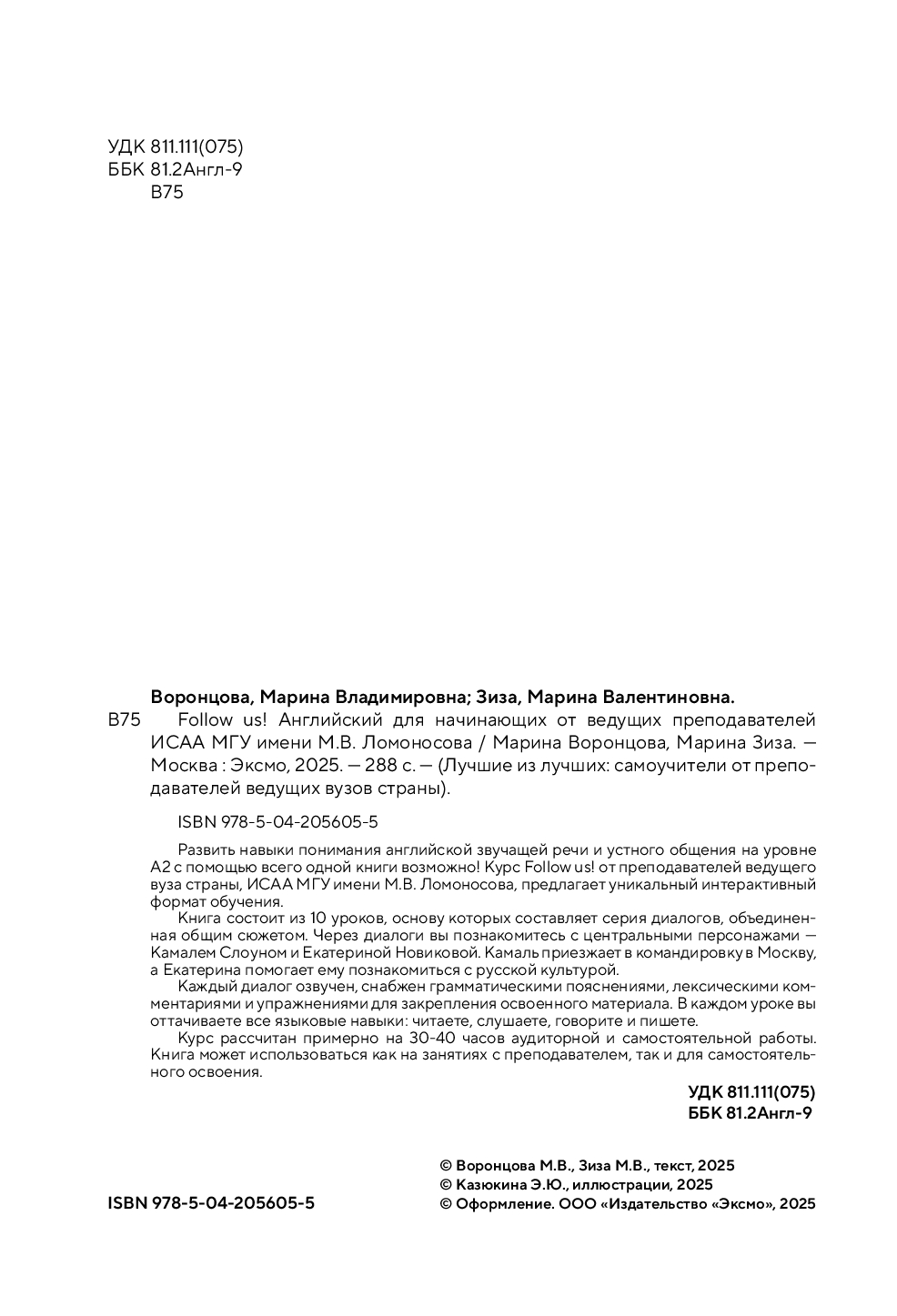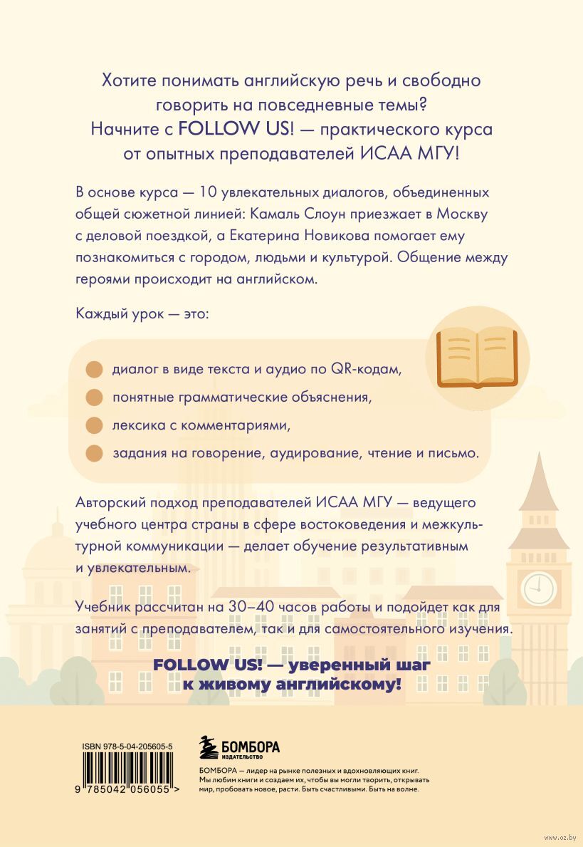 Развить навыки понимания английской звучащей речи и устного общения на уровне А2 с помощью всего одной книги возможно! Курс Follow us! от преподавателей ведущего вуза страны, ИСАА МГУ имени М.В. Ломоносова, предлагает уникальный интерактивный формат обучения.