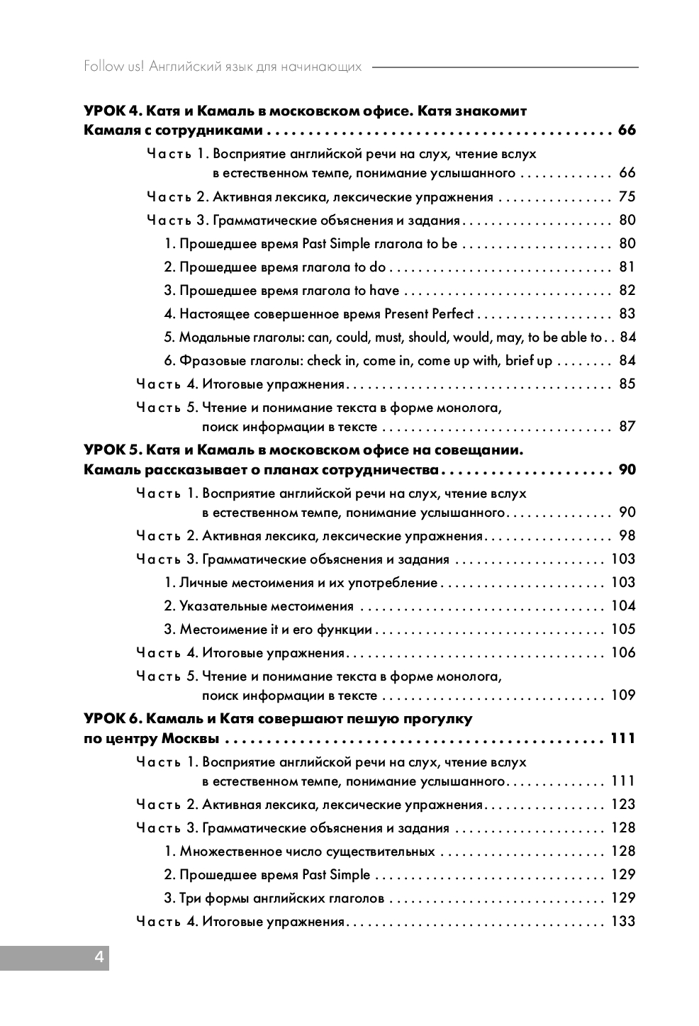 Книга состоит из 10 уроков, основу которых составляет серия диалогов, объединенная общим сюжетом. Через диалоги вы познакомитесь с центральными персонажами – Камалем Слоуном и Екатериной Новиковой. Камаль приезжает в Москву с деловой поездкой, а Екатерина помогает ему познакомиться с русской культурой.