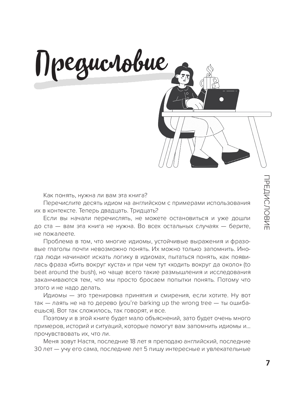 Английский язык насыщен идиомами и устойчивыми выражениями, значения которых не всегда очевидны. Идиомы можно только выучить, а как сделать это с удовольствием и запомнить навсегда, знает Анастасия Иванова, автор книг-бестселлеров по изучению английского языка. Автор разбирает идиомы и приводит примеры через истории и факты о женщинах, как известных по всему миру, так и простых вдохновительниц.