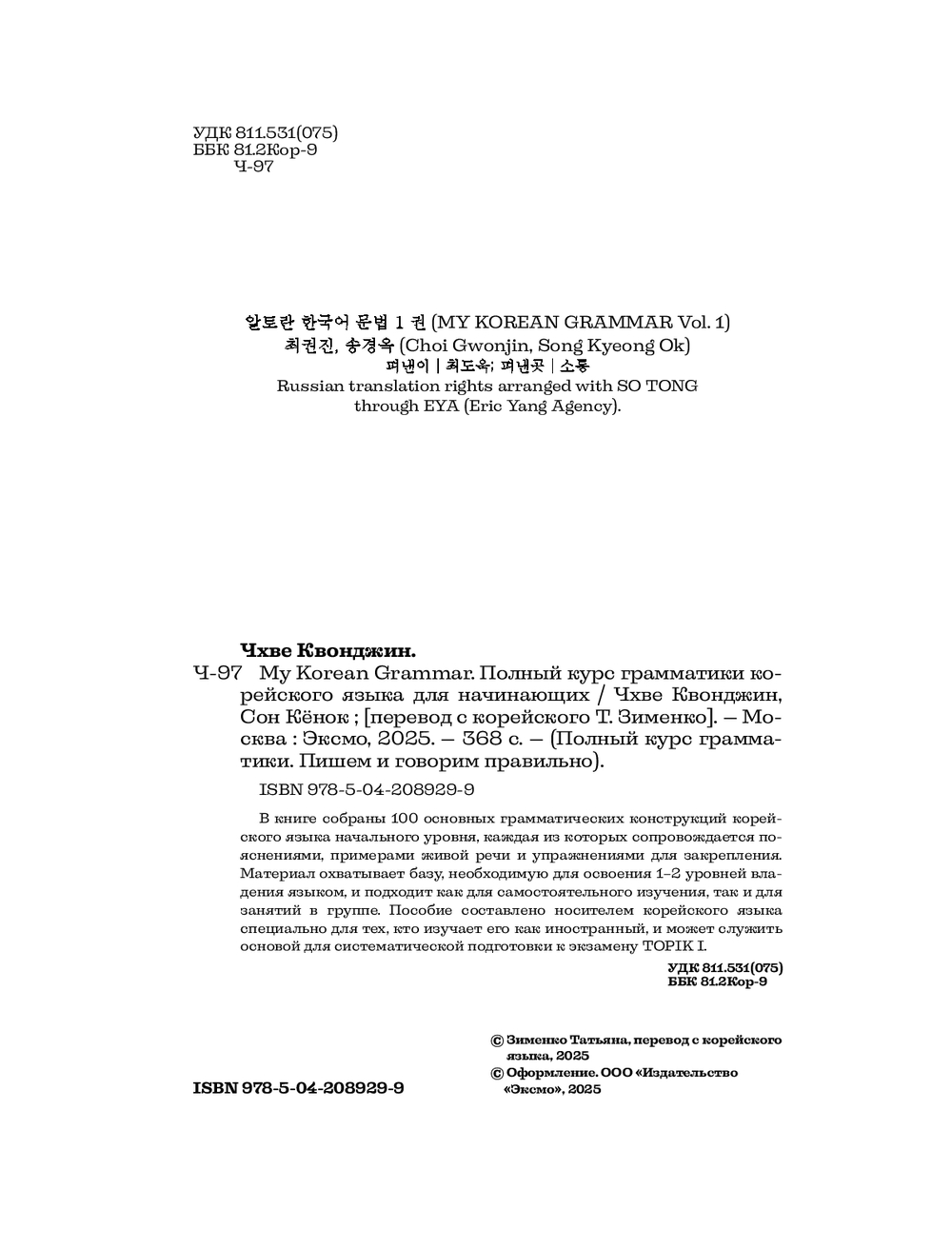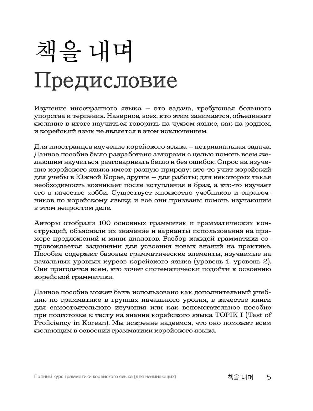 Это пособие создано для тех, кто делает первые шаги в изучении корейского языка. Оно помогает понять основы грамматики и постепенно выстраивать уверенность в речи. Каждое правило представлено в доступной форме, сопровождается примерами из живой речи и упражнениями для практики.