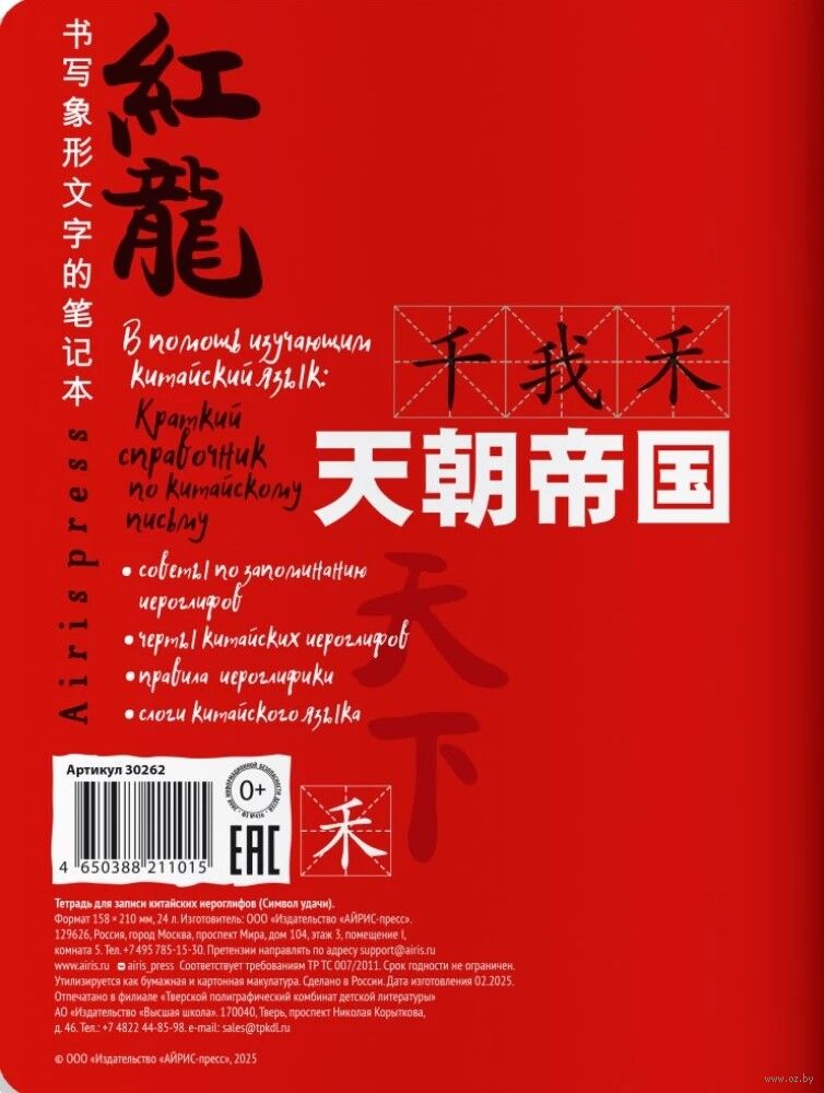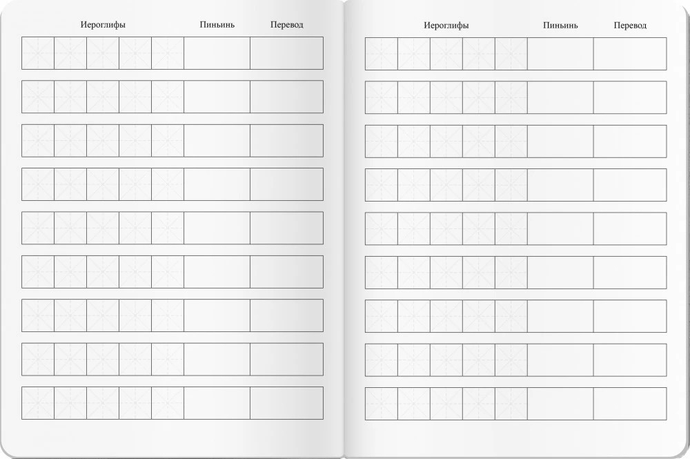С этой тетрадью легче и быстрее учить китайский язык. В ней уже есть колонки для иероглифов и их перевода. Специальная разметка в виде квадрата с пунктирными линиями для каждого иероглифа поможет записать его правильно. Это идеальное решение для тех, кто хочет быстро запоминать иероглифы и писать их красиво.
