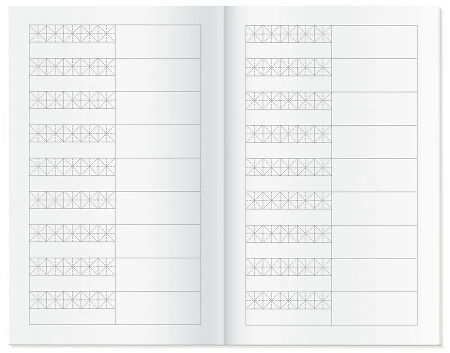 С этой тетрадью легче и быстрее учить китайский, японский и корейский. В ней уже есть колонки для иероглифов и их перевода. Специальная разметка в виде квадрата с пунктирными линиями для каждого иероглифа поможет записать его правильно. Это идеальное решение для тех, кто хочет быстро запоминать иероглифы и писать их красиво.